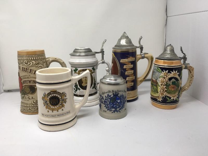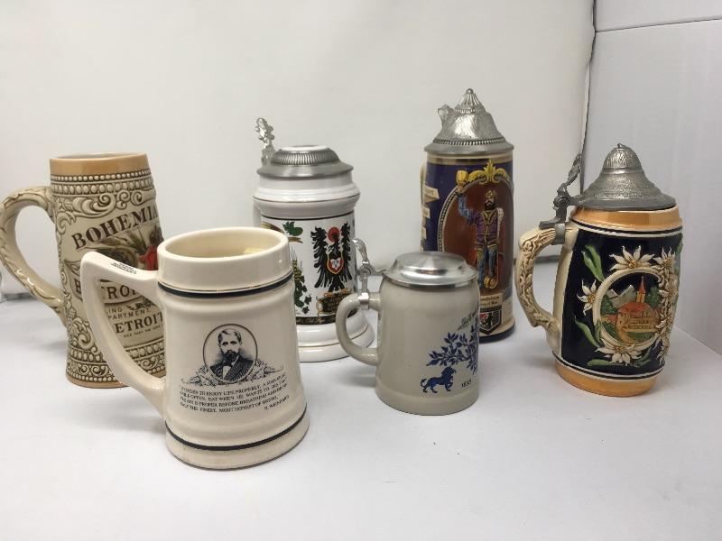 Lot 26 Various Beer Steins. Includes 6 in total. All in great shape.