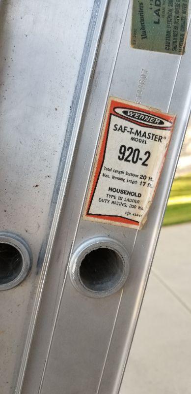 LOT 26: Wernerâ„¢920-2 Vintage Aluminum 20ft. Ladder