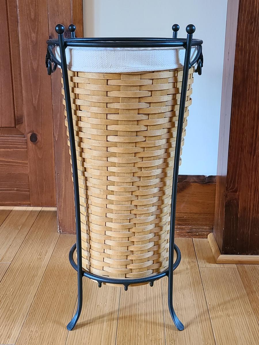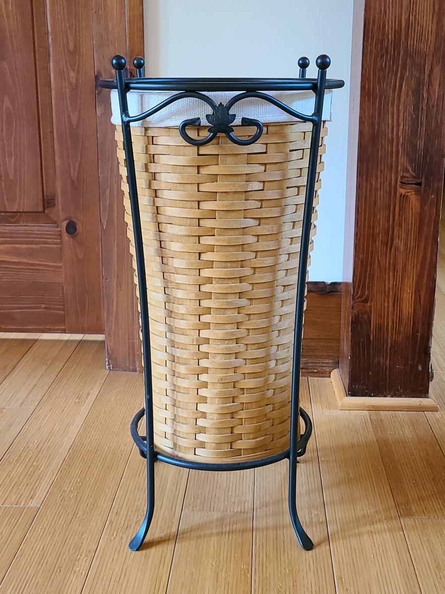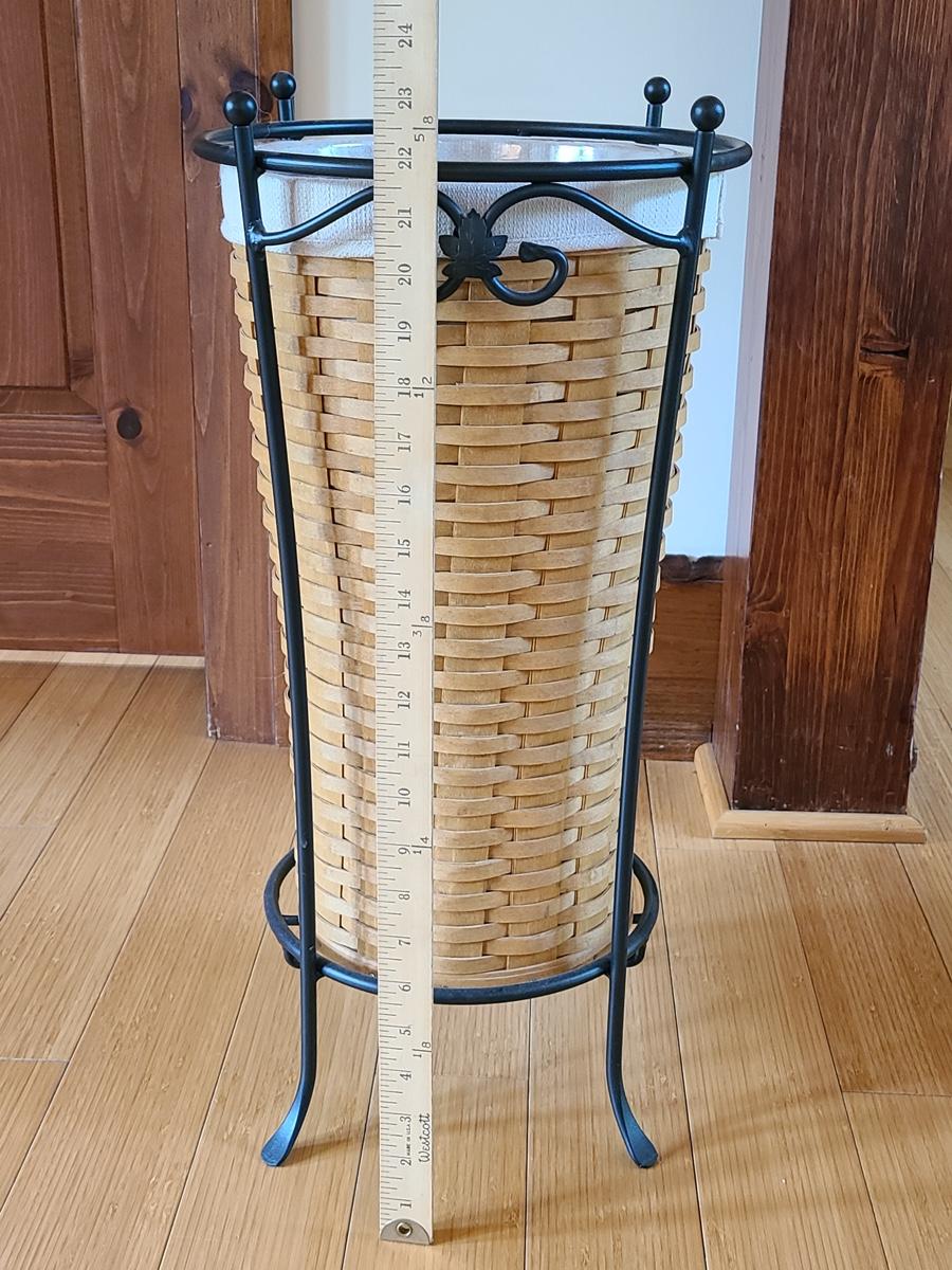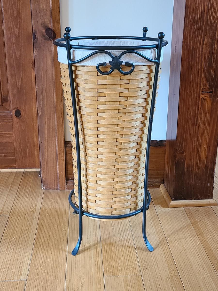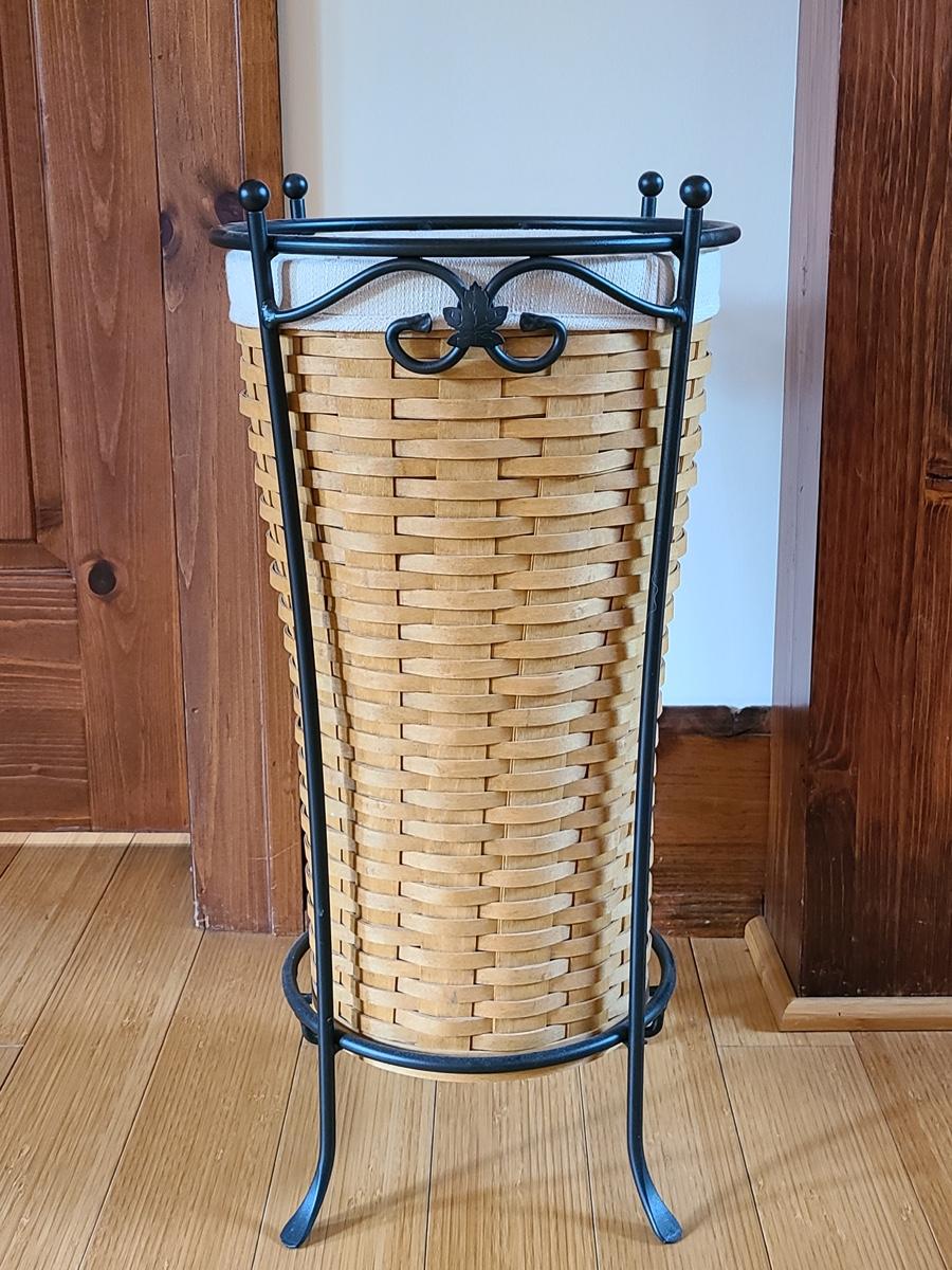 Lot 26: Longaberger Wrought Iron Umbrella Stand with Liner, Stand, Basket, and Protector