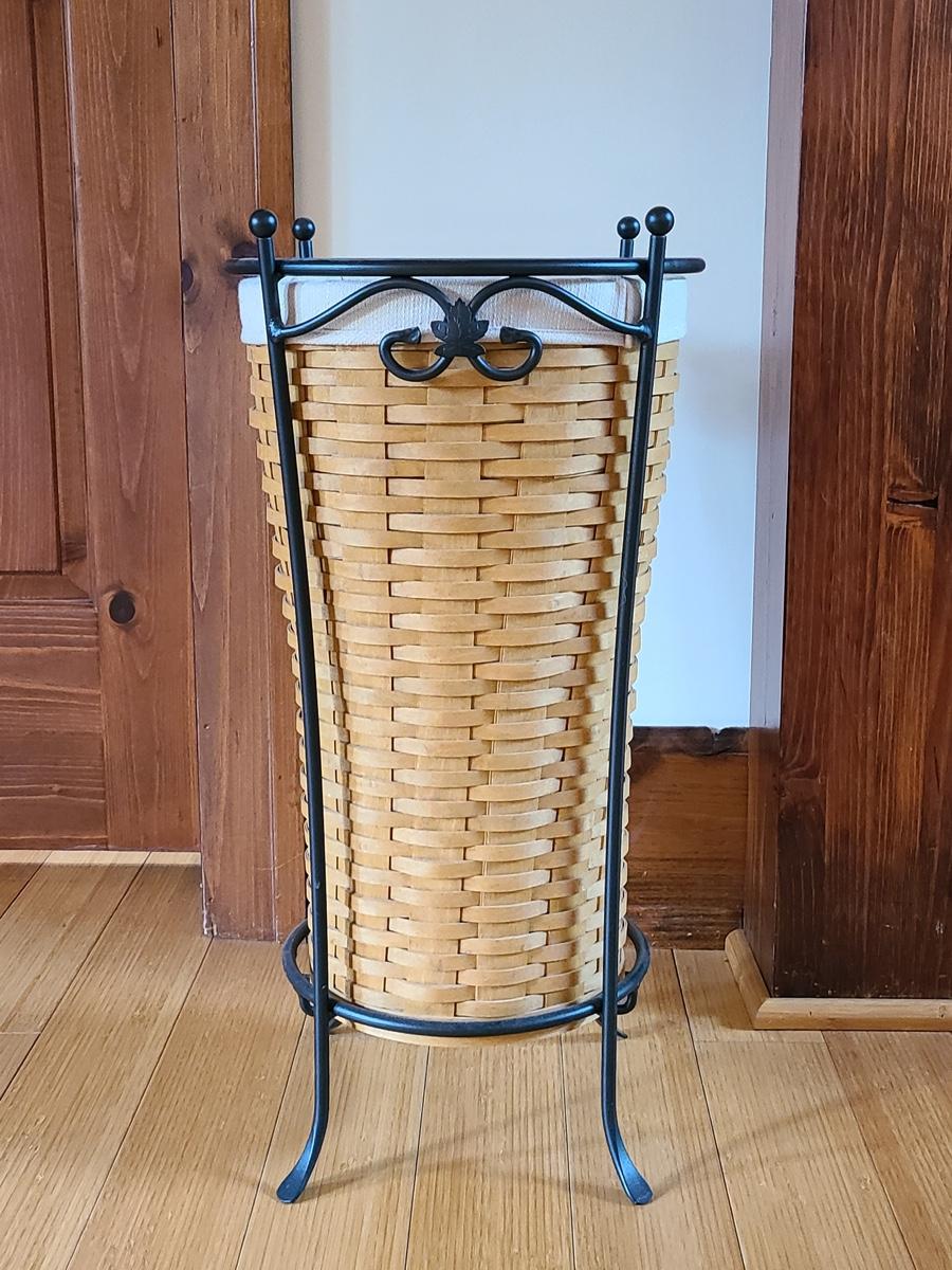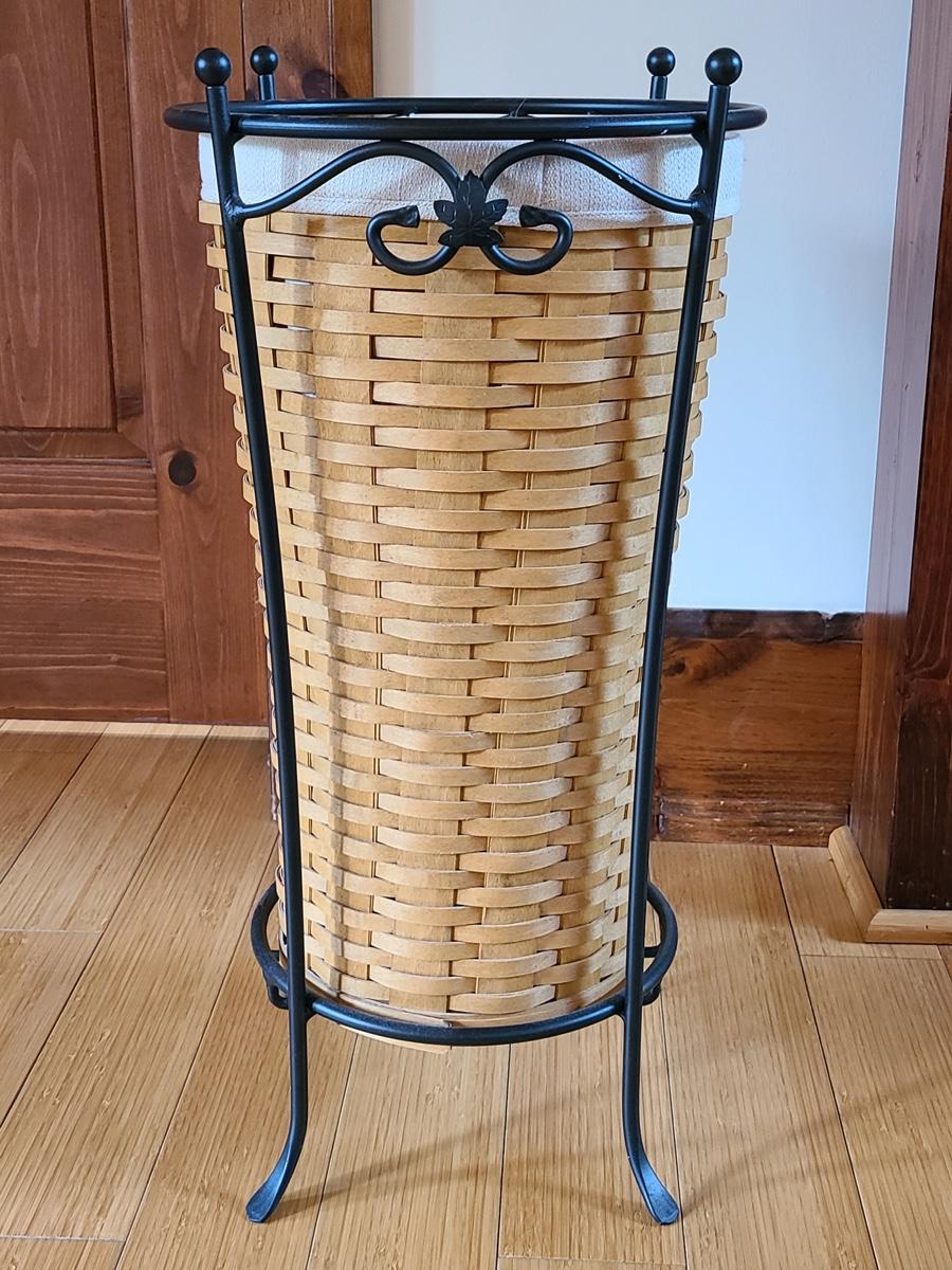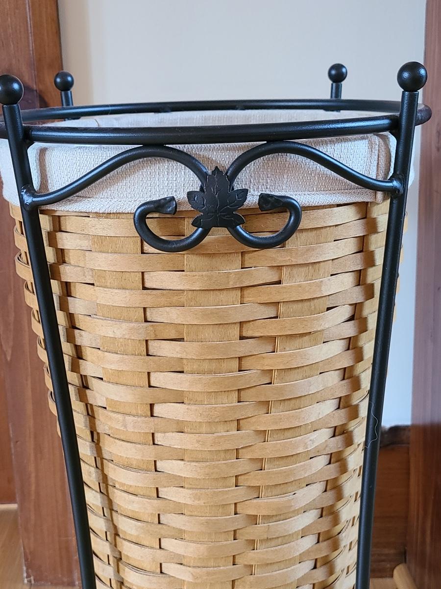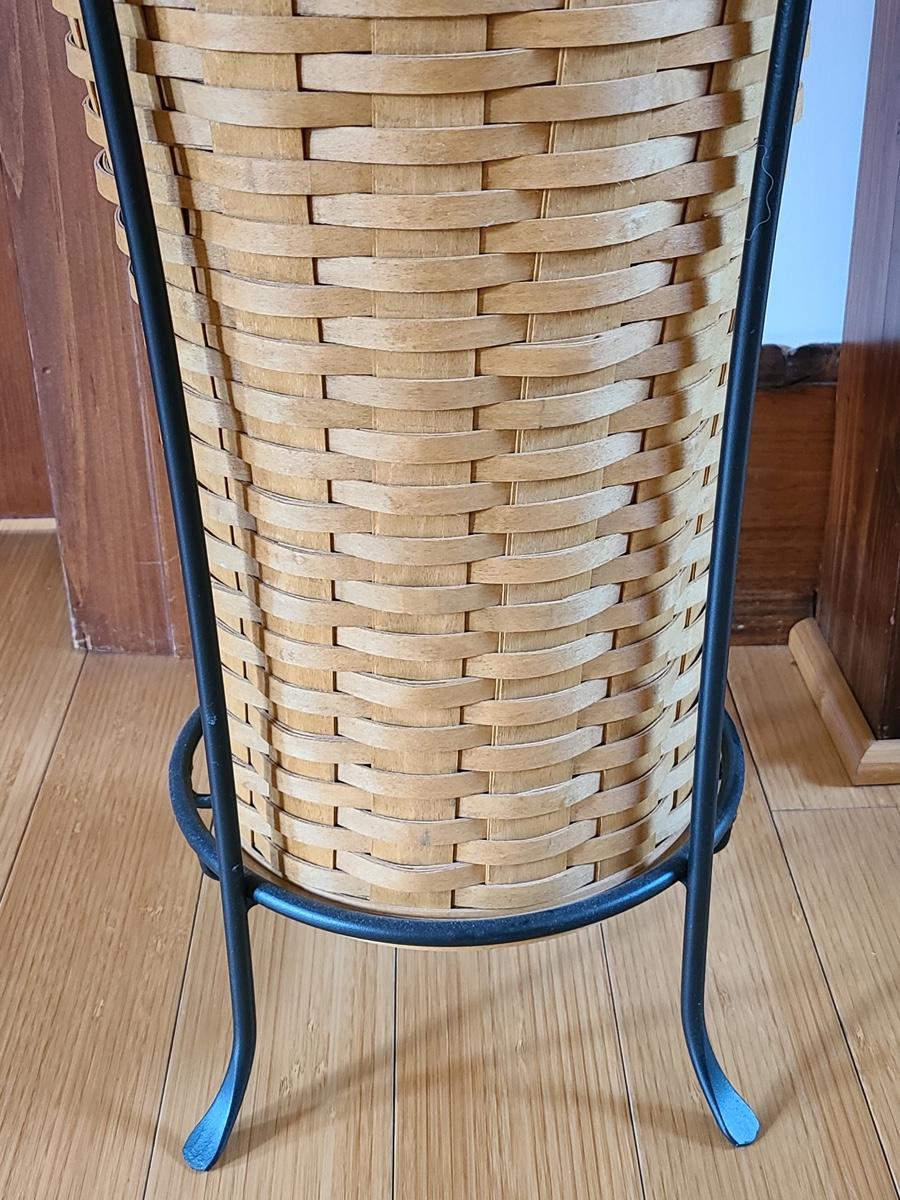 Lot 26: Longaberger Wrought Iron Umbrella Stand with Liner, Stand, Basket, and Protector
