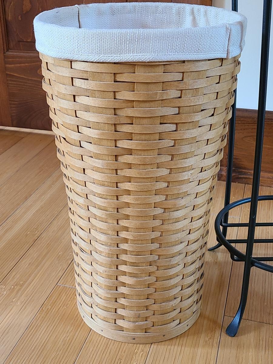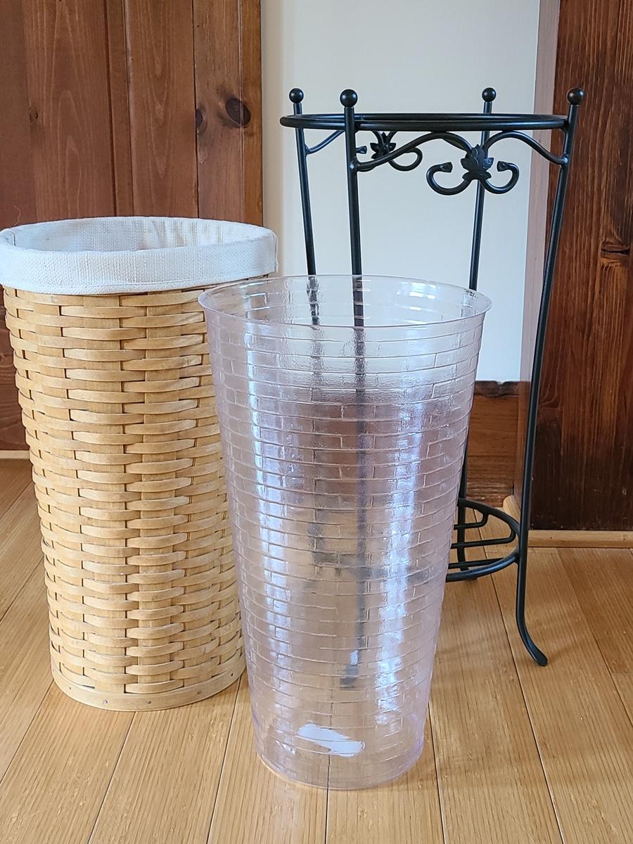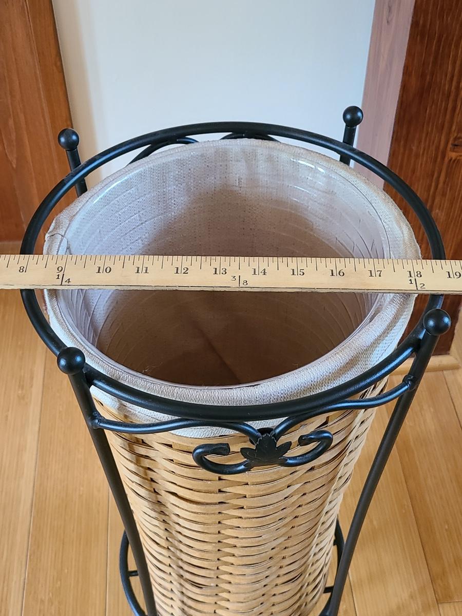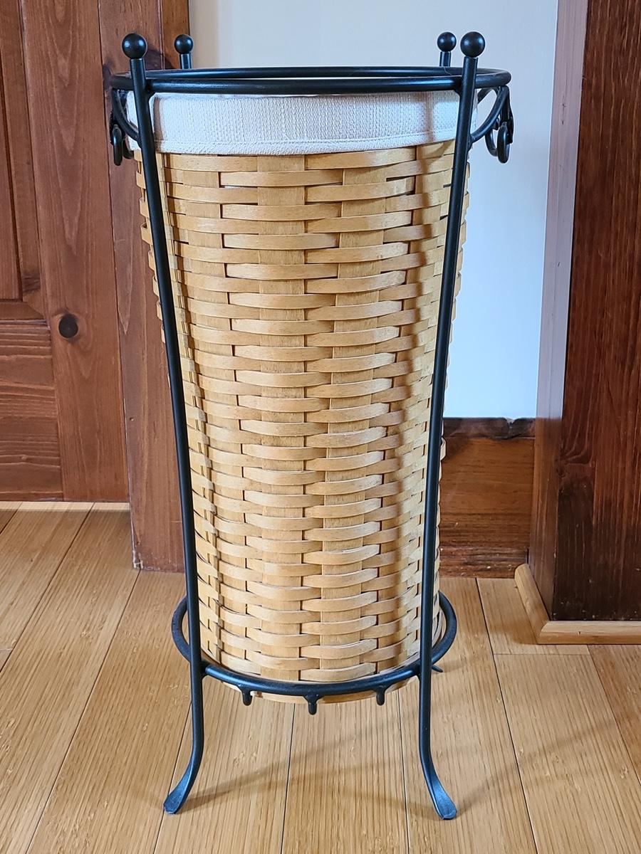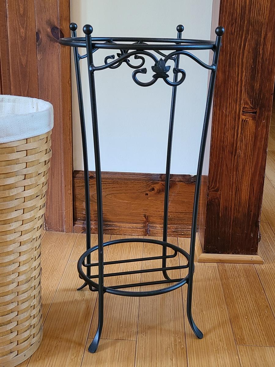 Lot 26: Longaberger Wrought Iron Umbrella Stand with Liner, Stand, Basket, and Protector