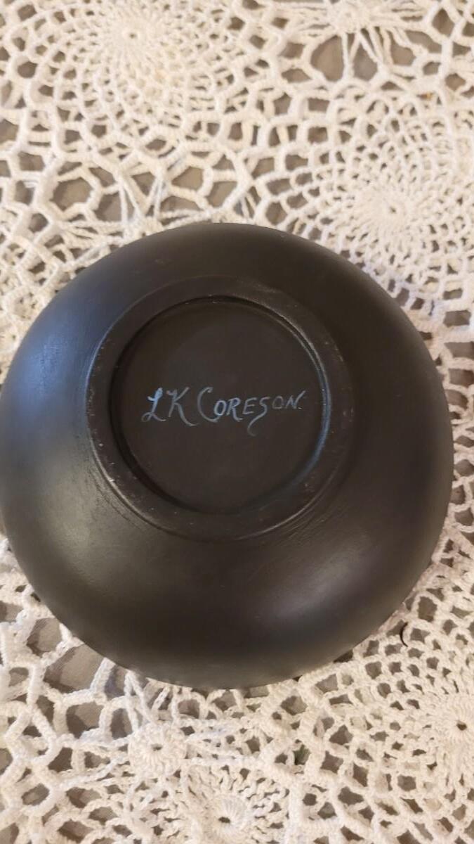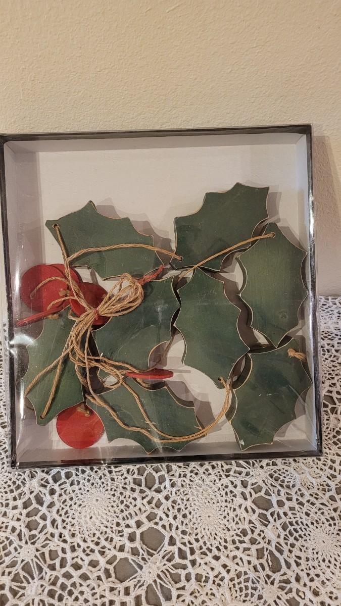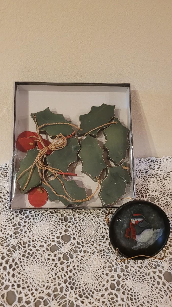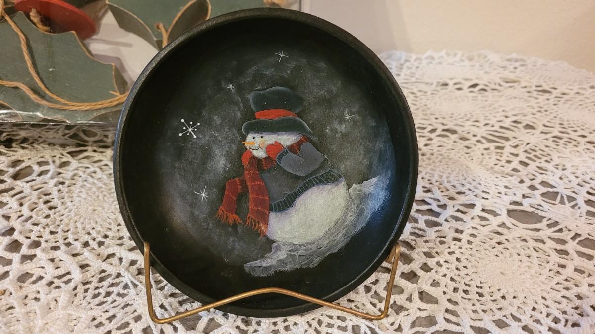 Lot 26: L.K. Coreson Handpainted Snowman Wood Bowl and Wood Holly Garland