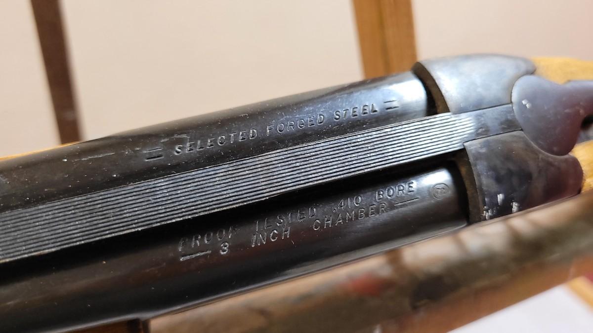 This Vintage .410 is a good, very plain double barrel. They are great hunting guns, and very reliable. They are not pretty and graceful like more expensive double barrel guns, but they were one of the most common farm guns for a generation or more in Colorado and beyond.