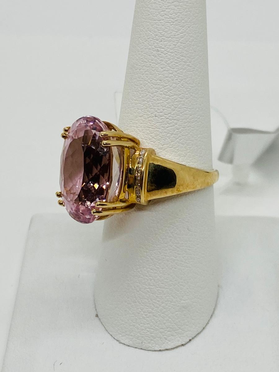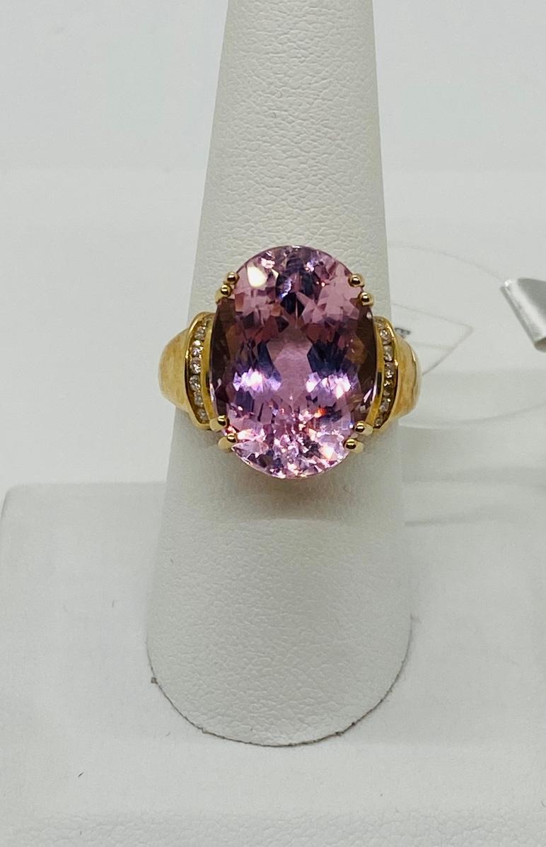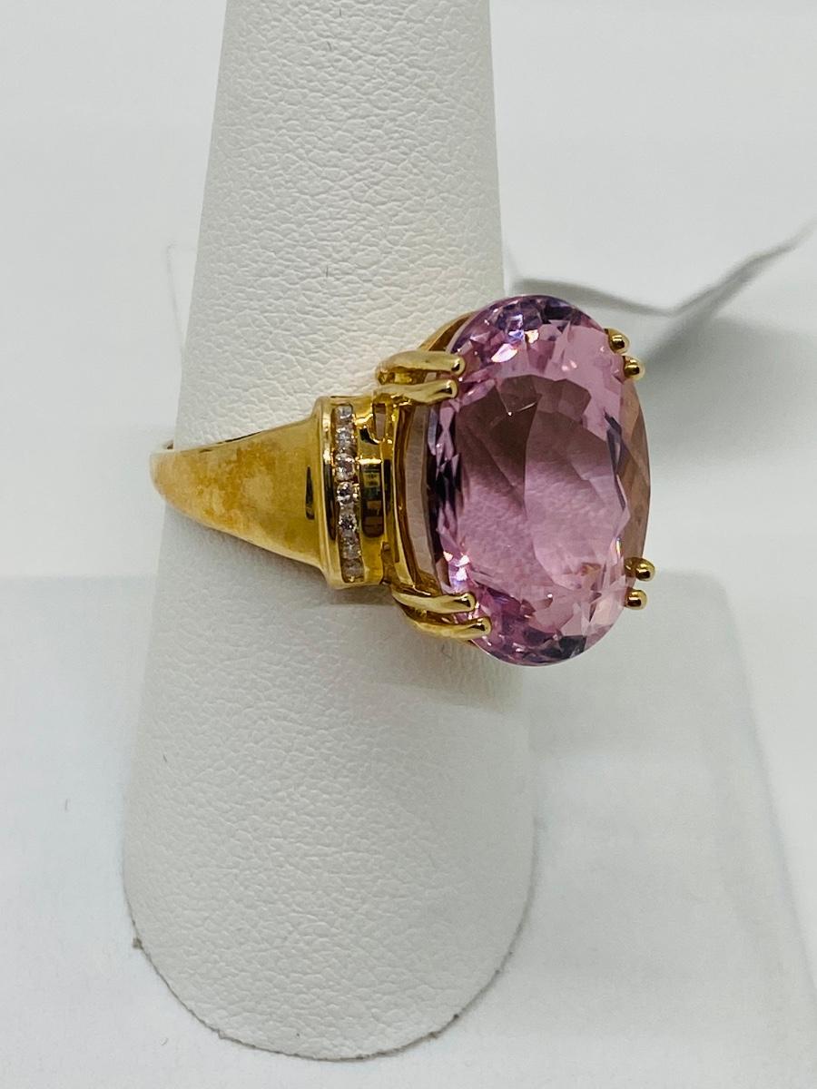 Gorgeous Pink Sapphire Diamond 14K yellow Gold Ring. Truly Stunning ring with a large beautiful Pink Sapphire stone with diamond chips on each side 8.8g total weight. Perfect Valentine's gift for that someone special 💕. The pictures show condition, measurements if taken, and what is included in the lot. Due to the large amount that we photograph and the time frame, we are not always able to take measurements. All items unless noted, are pre-owned and have been used, and are untested. Thank you