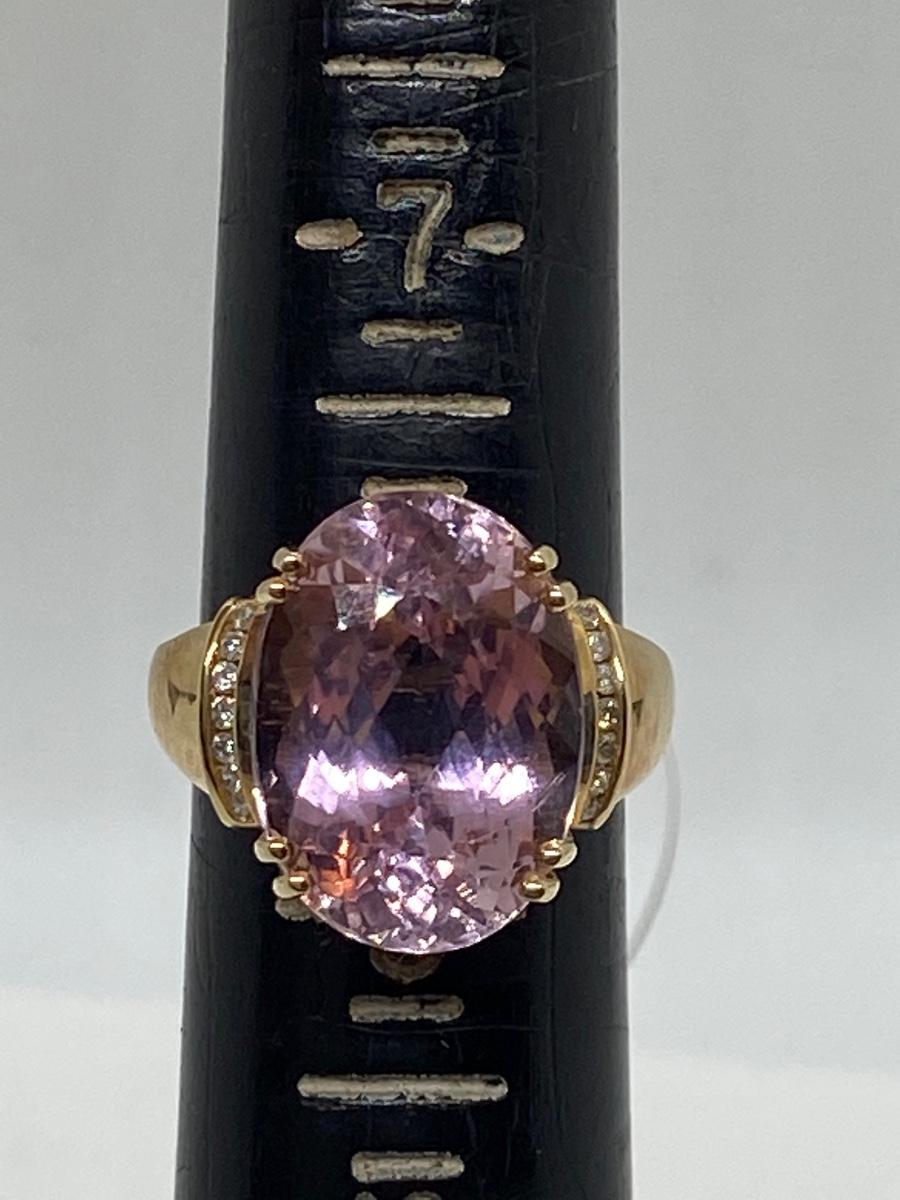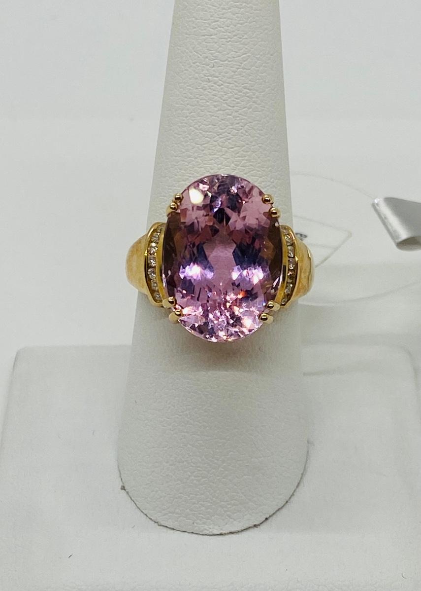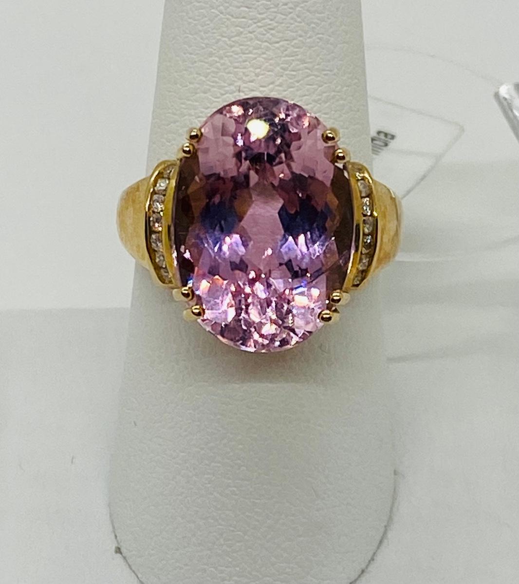 Gorgeous Pink Sapphire Diamond 14K yellow Gold Ring. Truly Stunning ring with a large beautiful Pink Sapphire stone with diamond chips on each side 8.8g total weight. Perfect Valentine's gift for that someone special 💕. The pictures show condition, measurements if taken, and what is included in the lot. Due to the large amount that we photograph and the time frame, we are not always able to take measurements. All items unless noted, are pre-owned and have been used, and are untested. Thank you