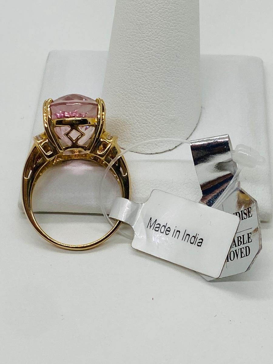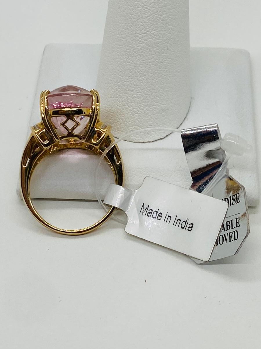 Lot 26: New! 8.8g 14k Yellow Gold Large Pink Sapphire Ring Size 8 Marked OTC