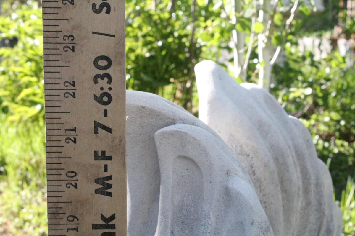 About 22.5" tall and composition is plaster composite.