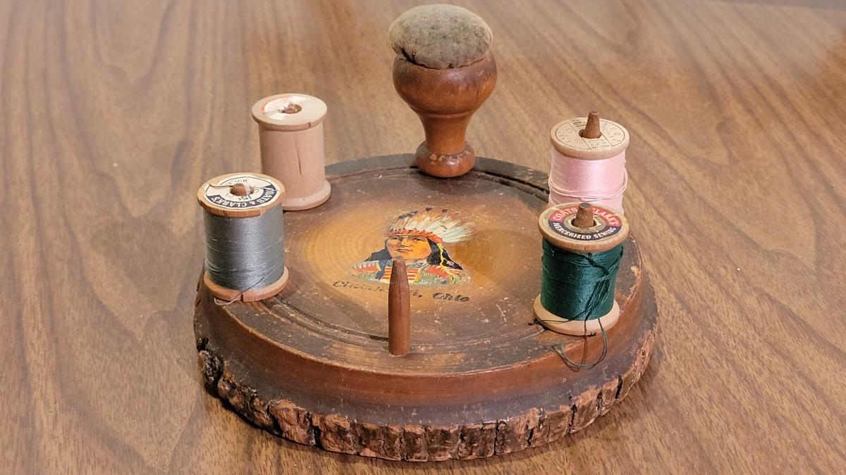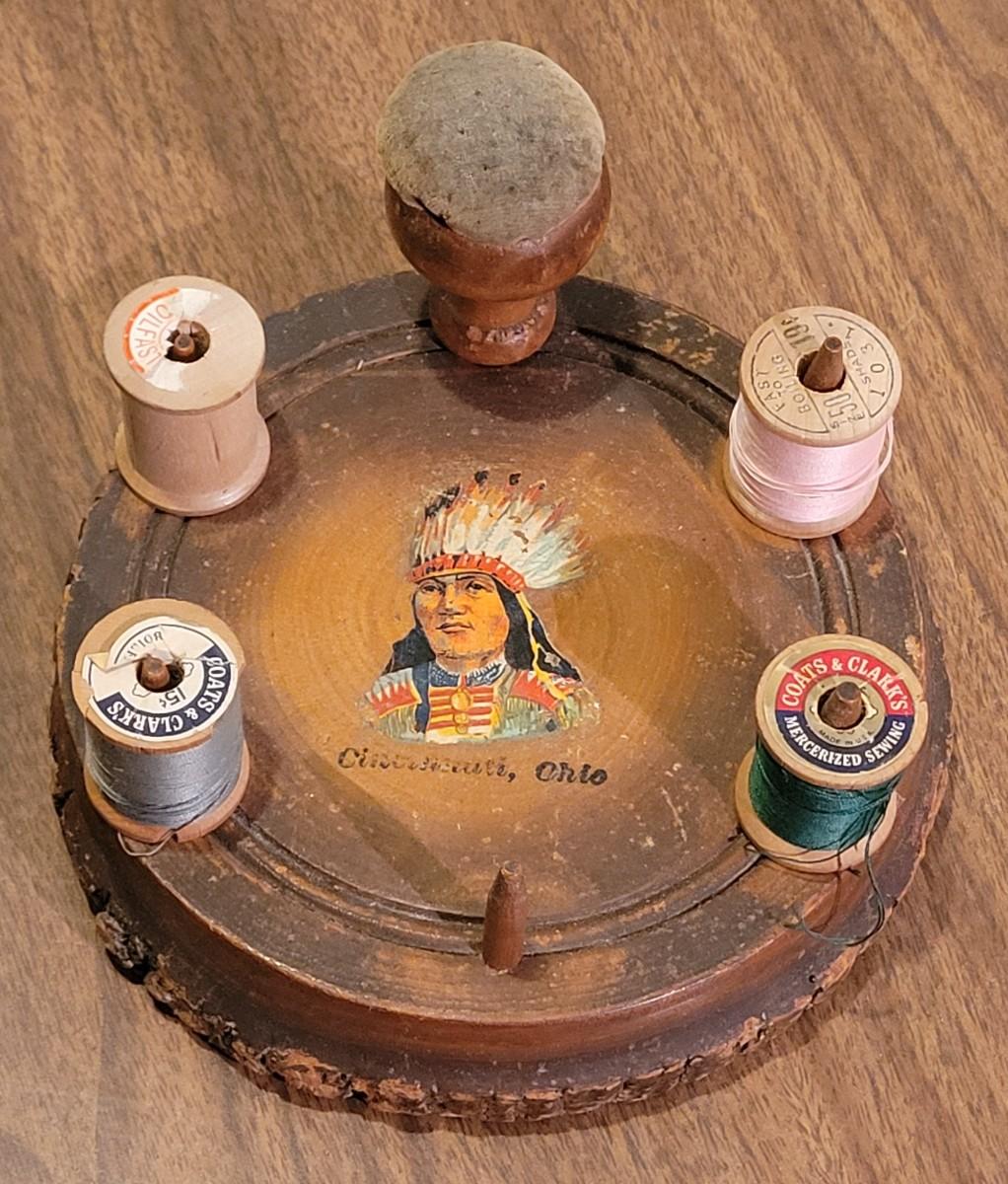 Lot 26: Vintage Spool Holder with Cincinnati, Ohio & a Chief