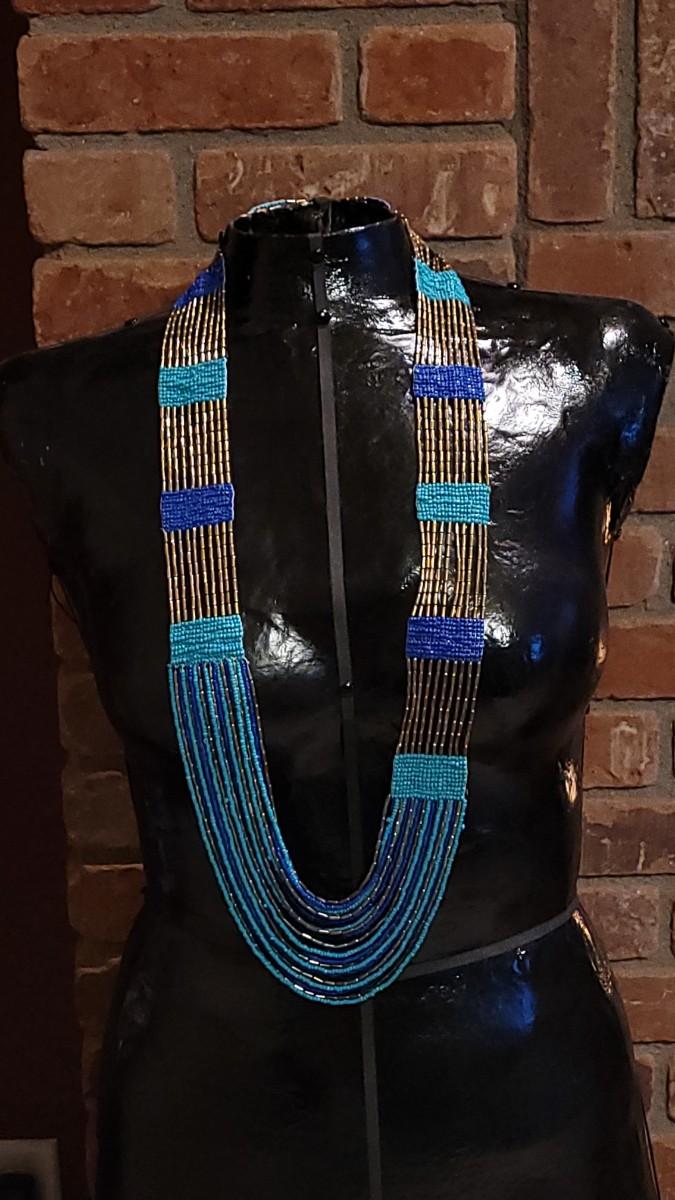 Lot 26: Turquoise, Lapis & Bronze Colored Bead Long Necklace