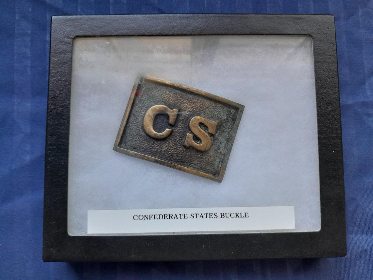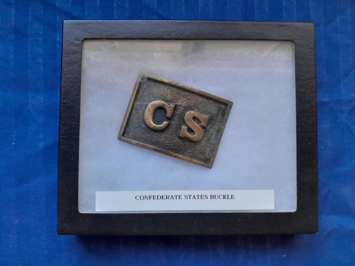 ANTIQUE "CS" CONFERDERATE STATES BELT BUCKLE IN DISPLAY BOX