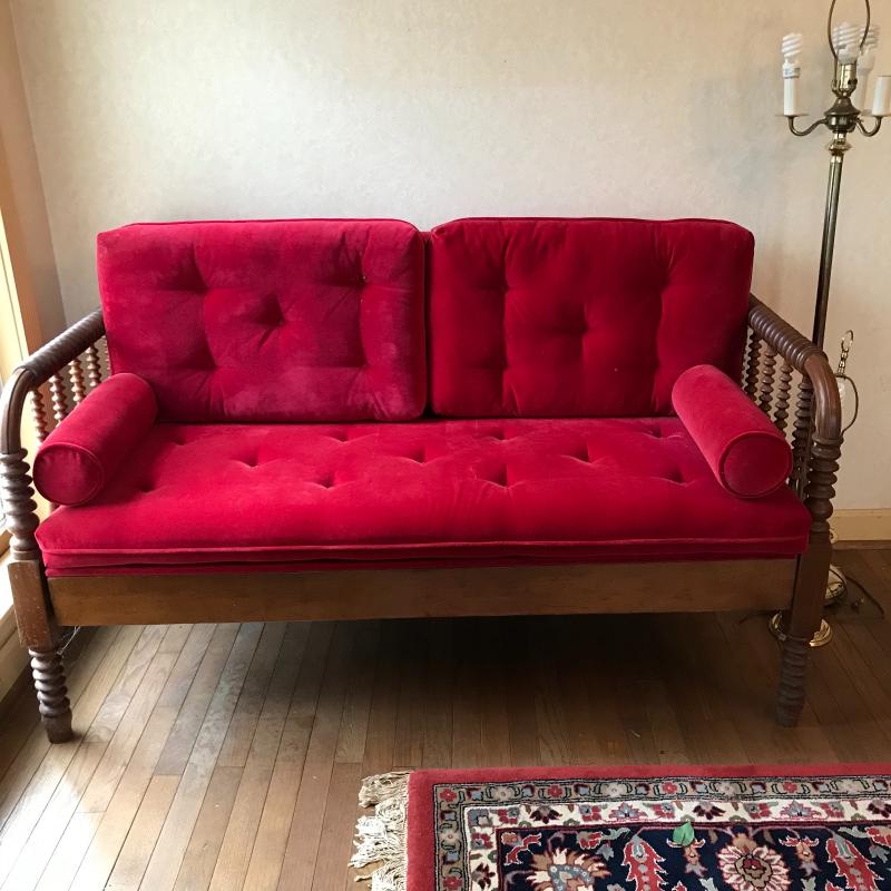 Lot 26 - Antique Red Velvet Bench/Couch