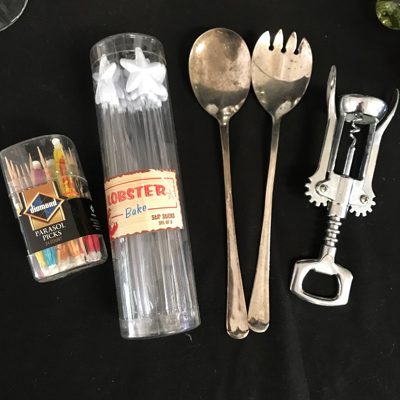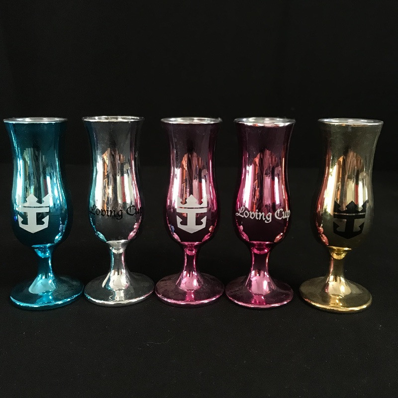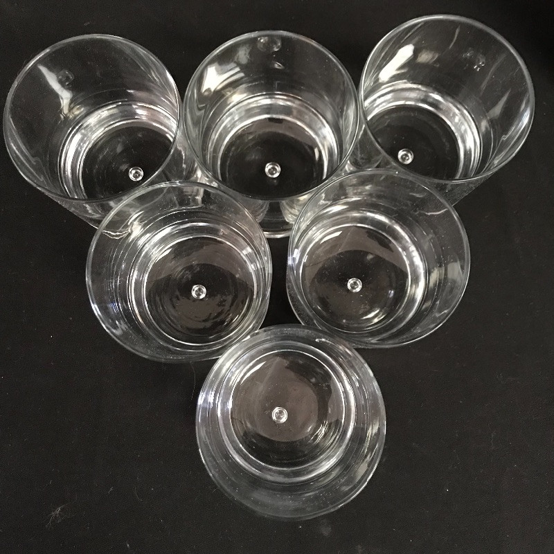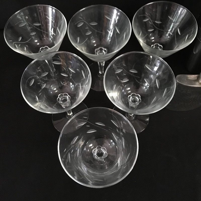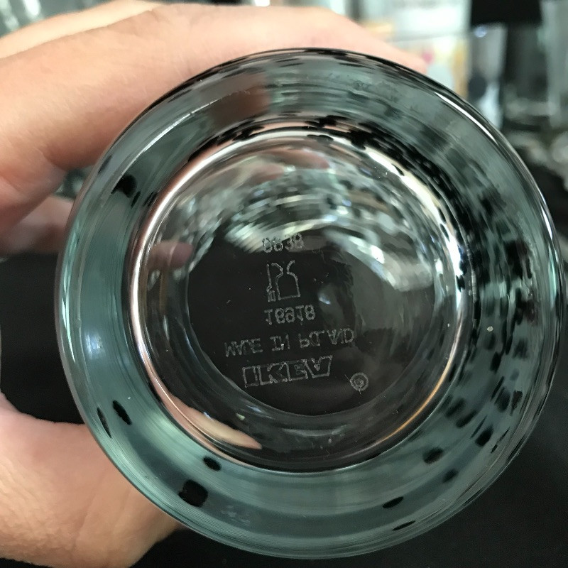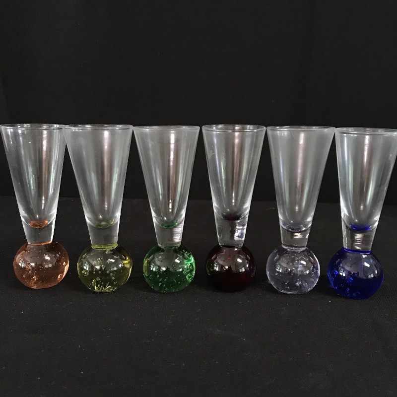 There is a lot to see here and some really unique items as well as great quality. Included are six really great looking blown glass shot glasses, a new set of silver rimmed 2oz shot glasses and five metallic painted grail like shots glasses. A Vinnebago and metal shaker. Four fun Ikea rocks glasses, Sheffield flask and serving ware with a set of six cut glass champagne coupes. Another set of six heavy rocks glasses with a delicate bubble in the center of each bottom, one glass has a slight chip in the rim. See images for all.