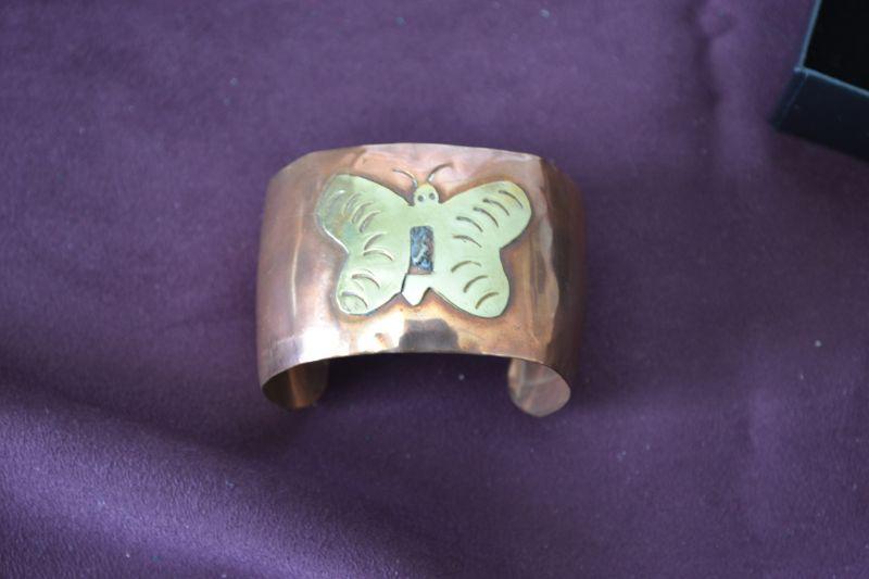 BRASS BUTTERFLY ON COPPER BRACELET (MADE IN MEXICO)