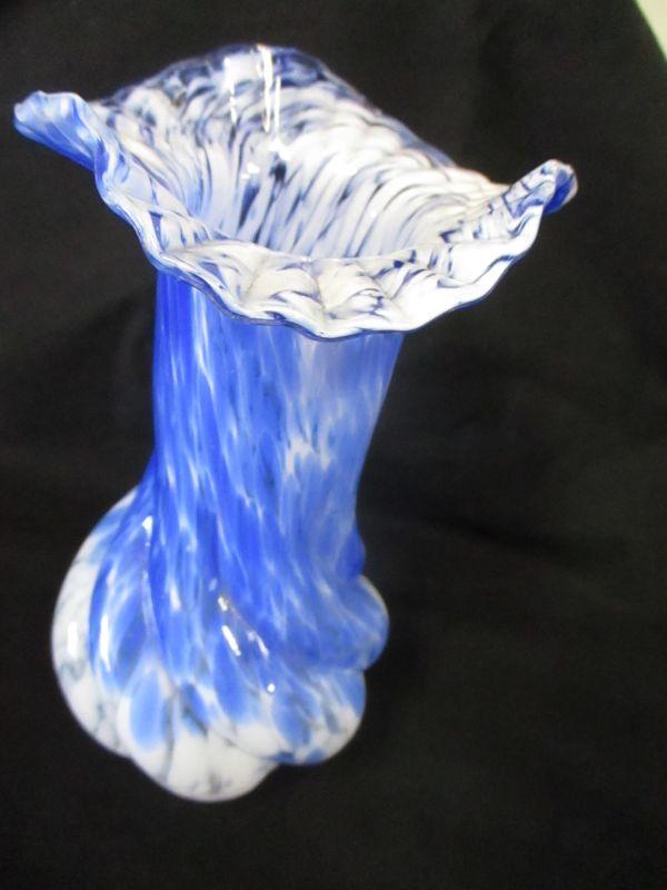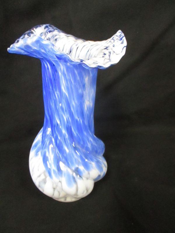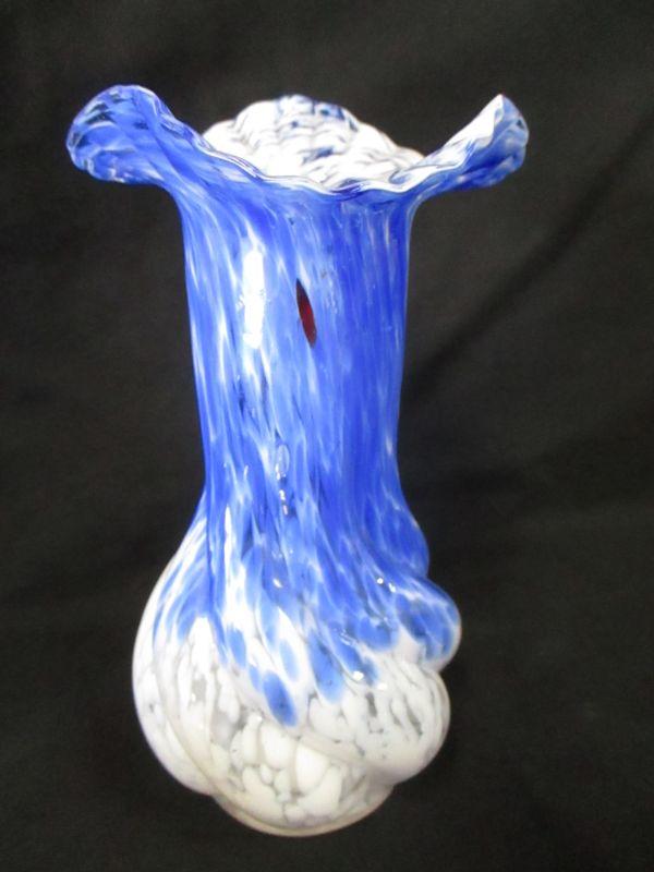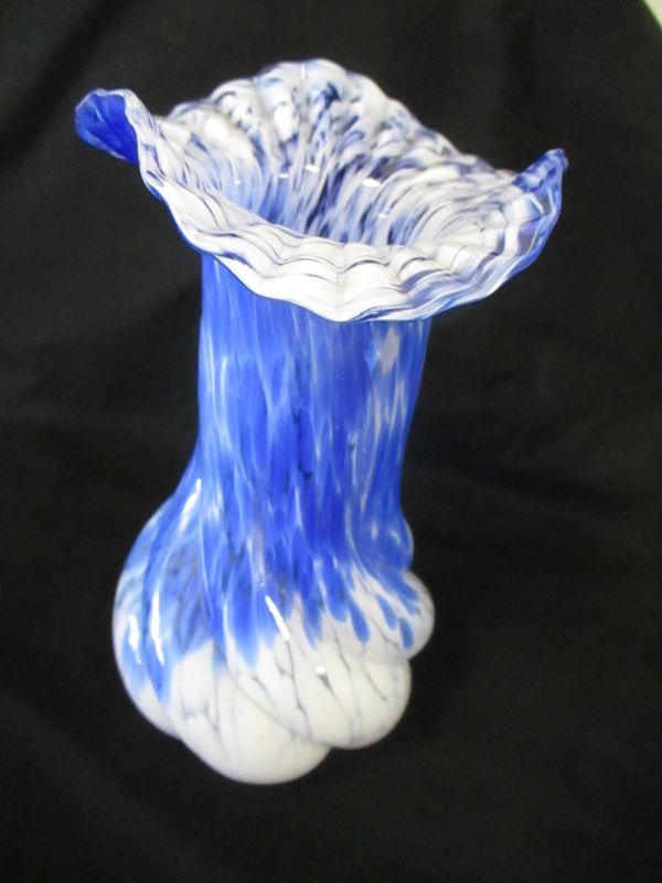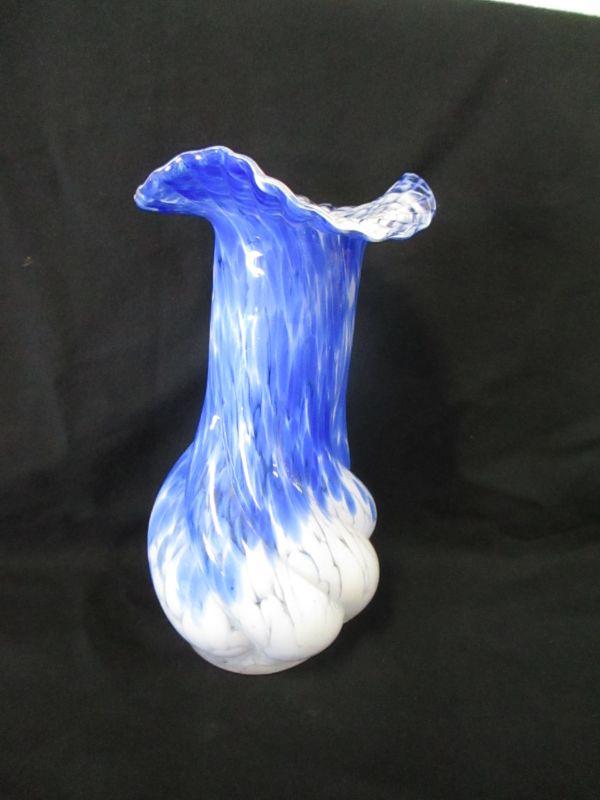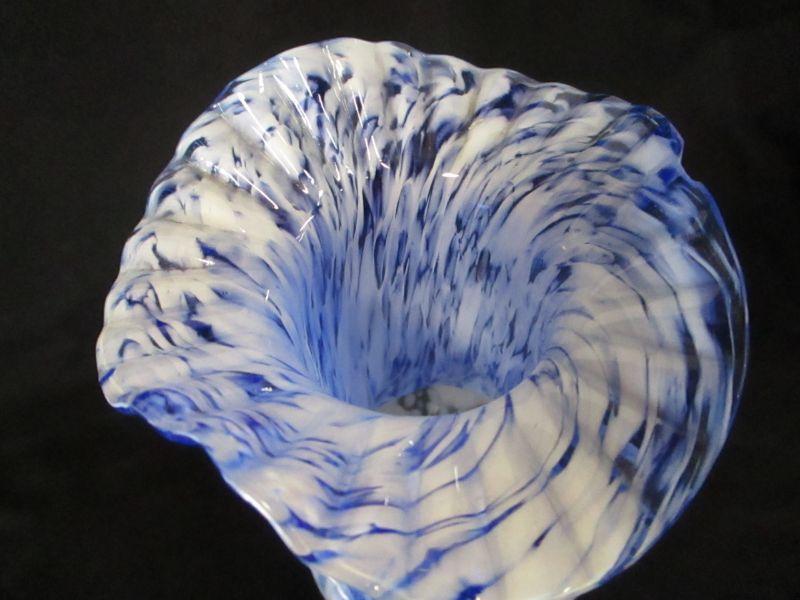 Lot 26 - Colorful Swirl Design Blue & White Glass Vase