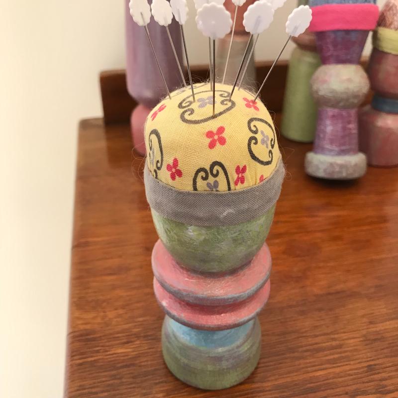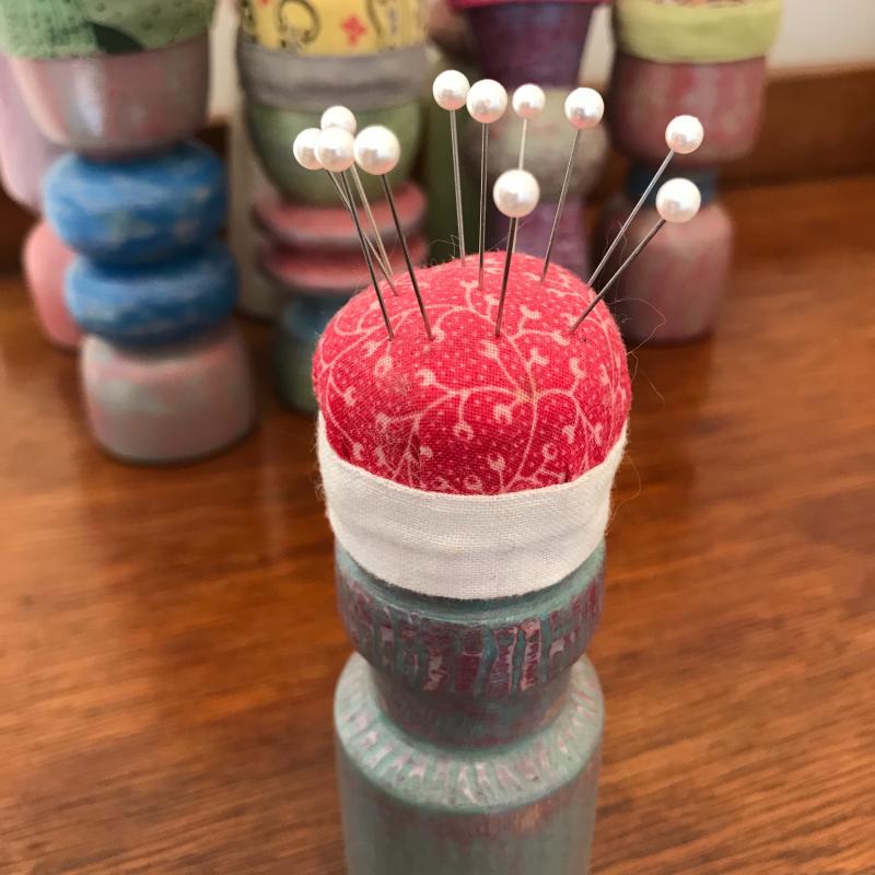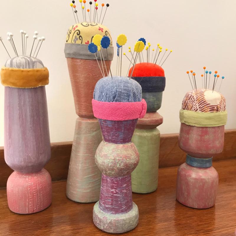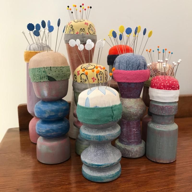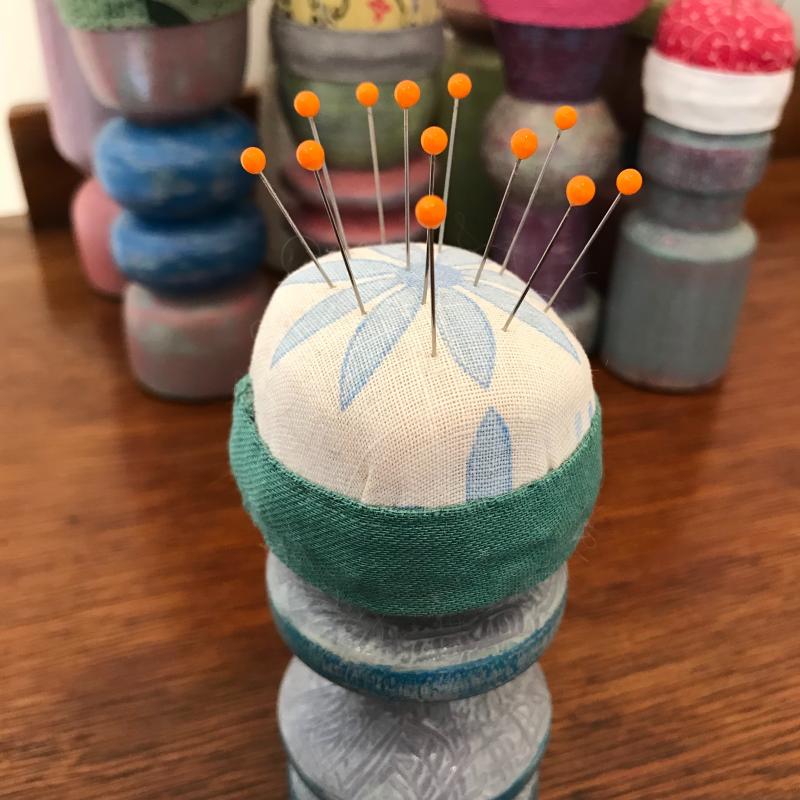 This eclectic collection contains 8 fun (yet functional!) pin cushions, the tallest measuring approx. 8”. Shipping available or local pickup in Asheville, NC.