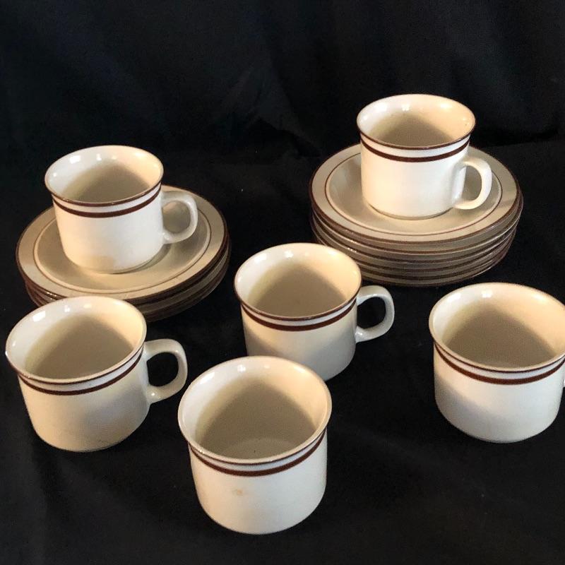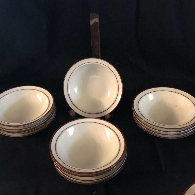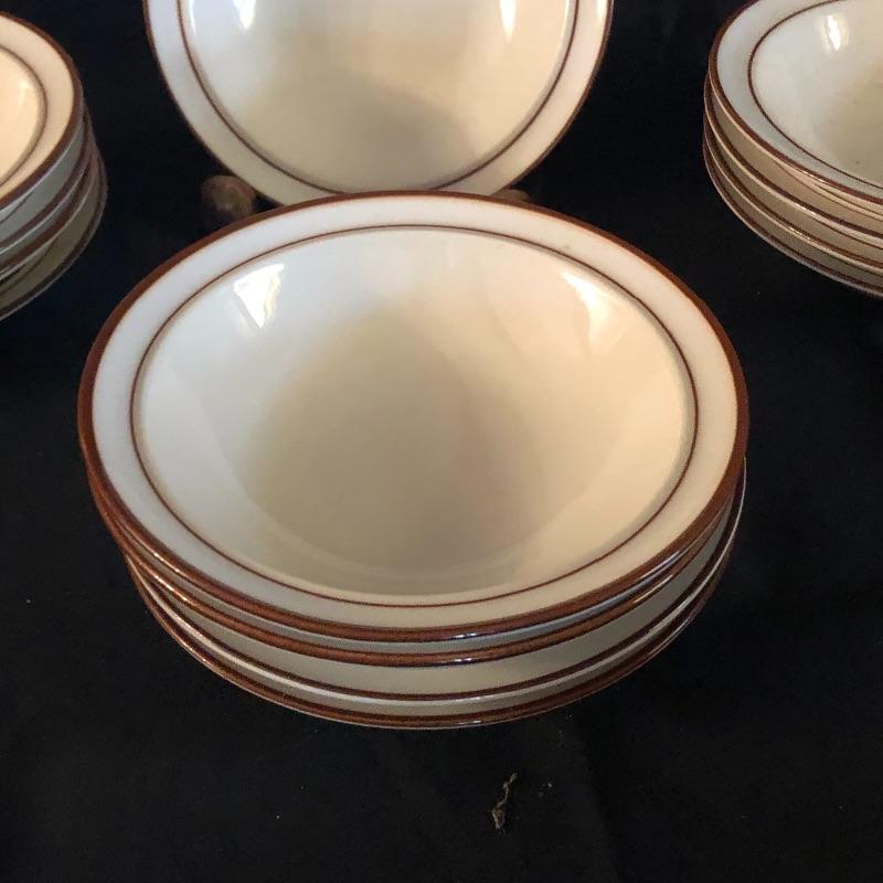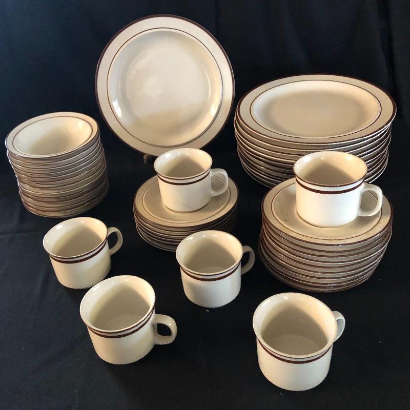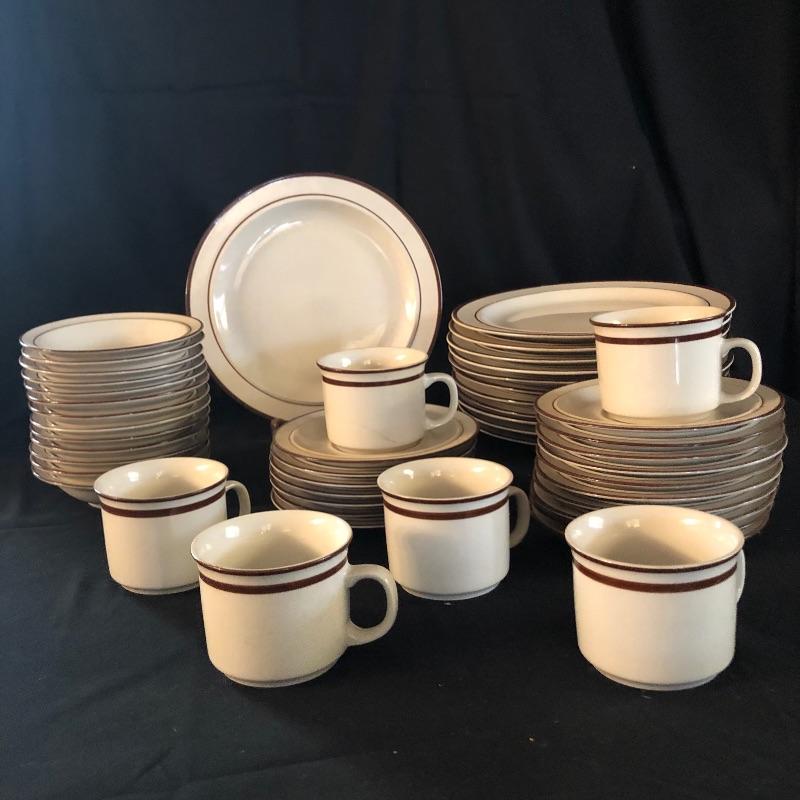 This set of elegance dish ware contains twelve dinner plates, thirteen bowls, seven salad plates, ten saucers and six cups. Local Pick Up only.