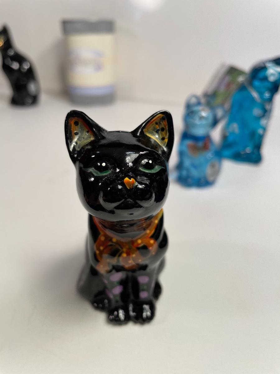 Black 5074 MU, 2005 signed, not sure of the other model numbers but there's 2 clear blue hand-painted (the larger one is signed) and black with hand-painting on the face (signed)