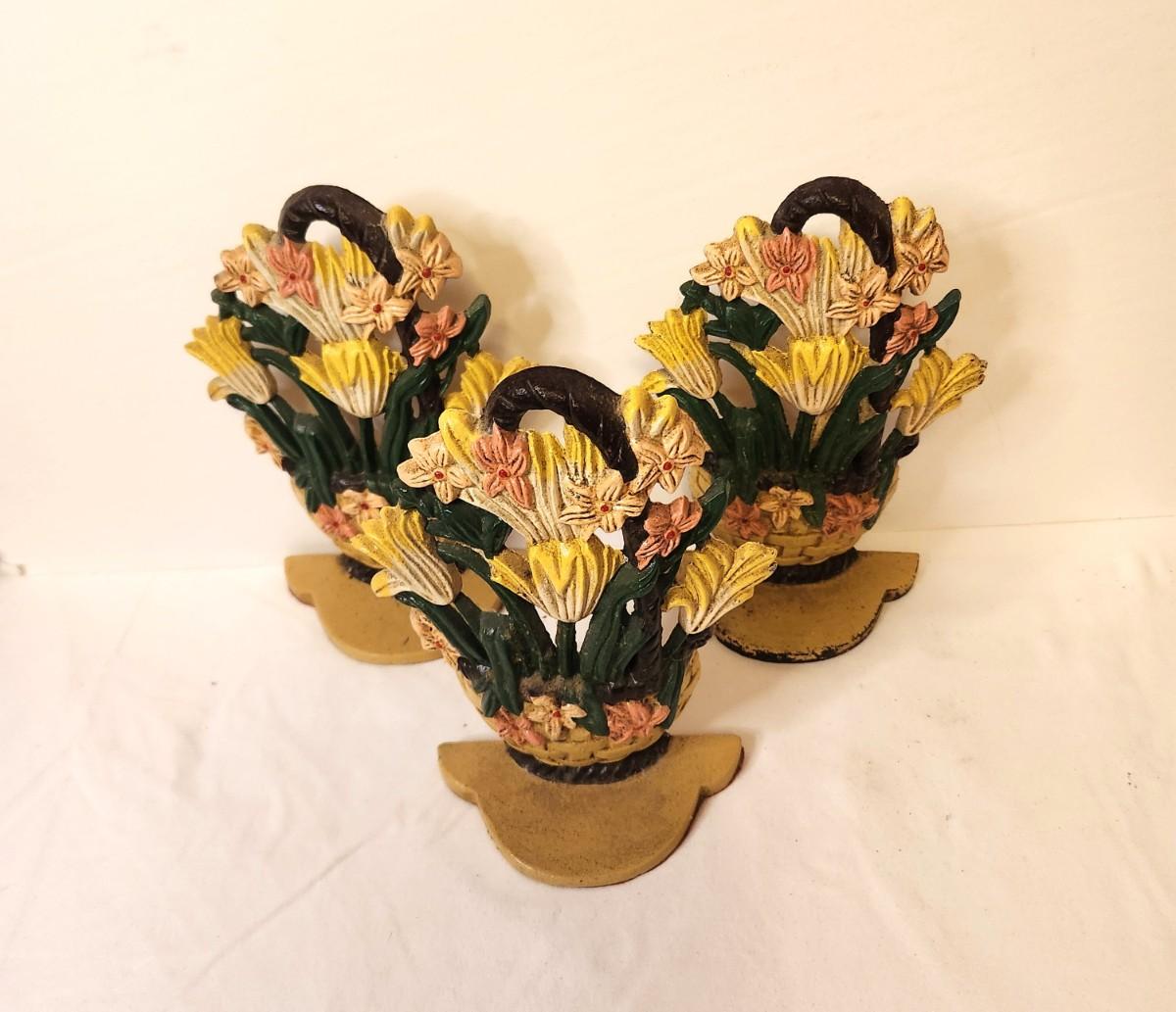 Lot #26 Group of 3 Cast Iron Door Stoppers - Tulips