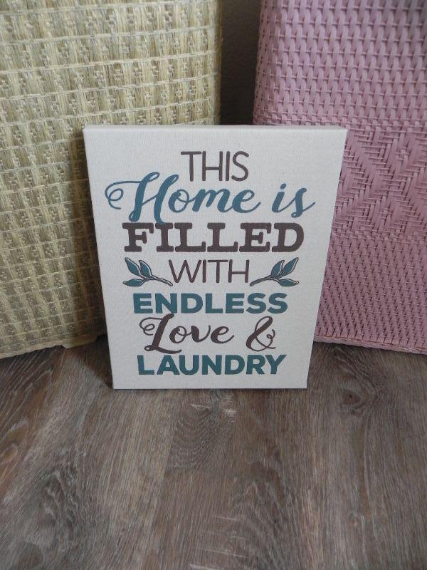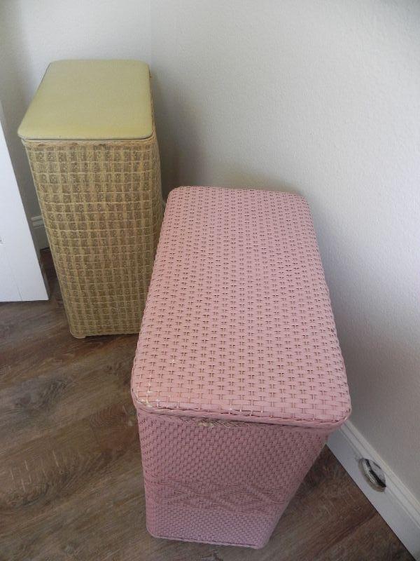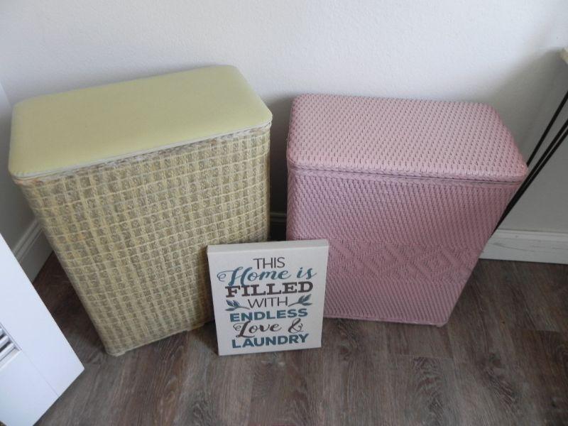 2 CLOTHES HAMPERS & HANGING LAUNDRY SIGN