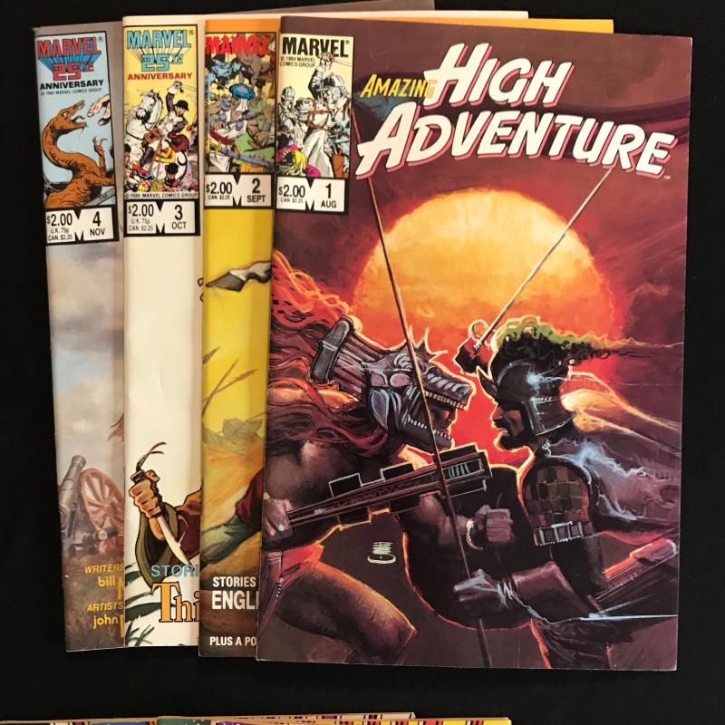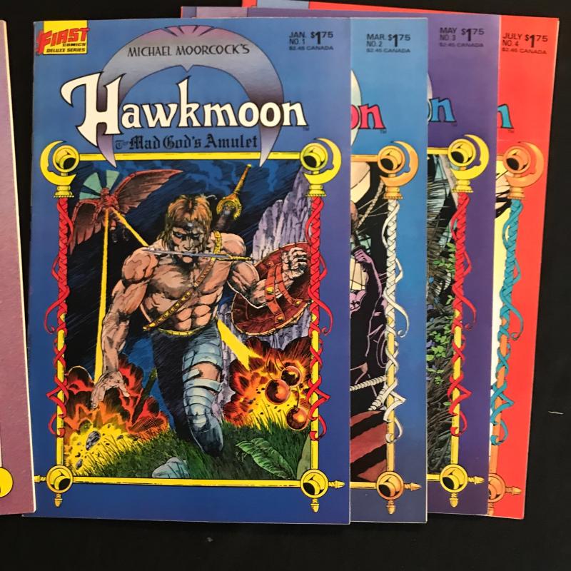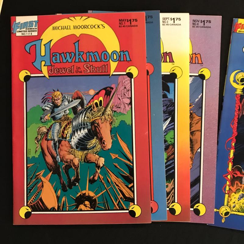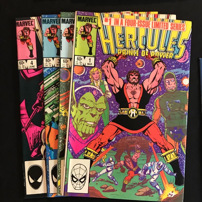 6 issues of "Hercules" by Marvel, 4 issues of "High Adventure" by Marvel, 4 Issues of "Hawkeye" by Marvel, 8 Issues of "Hawkmoon" by First Comics, and various other titles. 39 total issues in this lot. Fits into one Priority box for shipping or local pick up in Asheville, NC.