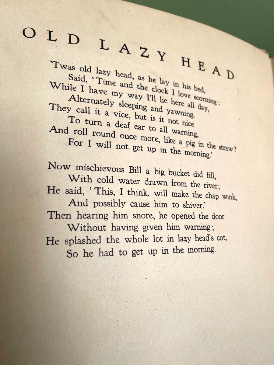 LOT 26 - I Wonder Why - Sixteen Songs for Children by the late Sir Alfred Scott-Gatty with Words by Dorothy Pleydell-Bouverie and illustrations by W. Graham Robertson. Copyright 1920. It is inscribed to David in 1921 from his mother Dorothy Pleydell-Bouverie. The covers and spine have wear and age to them. Bend corners and some marks on the covers. Inner pages have some discoloration with age. It includes music and lyrics. This book was part of the David-Pleydell-Bouverie library at Bouverie Ranch in Glen Ellen. This item can be viewed at our Green + Cate Showroom in Sebastopol from July 15th - July 18th between the hours of 9am-5pm. For the benefit of the Bouverie Preserve of Audubon Canyon Ranch.