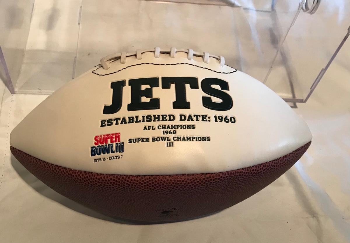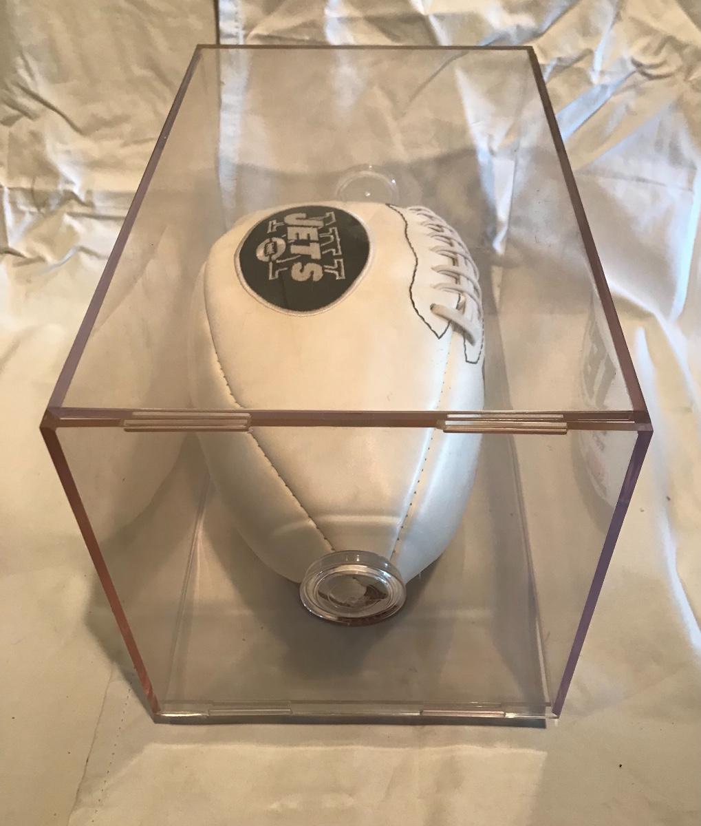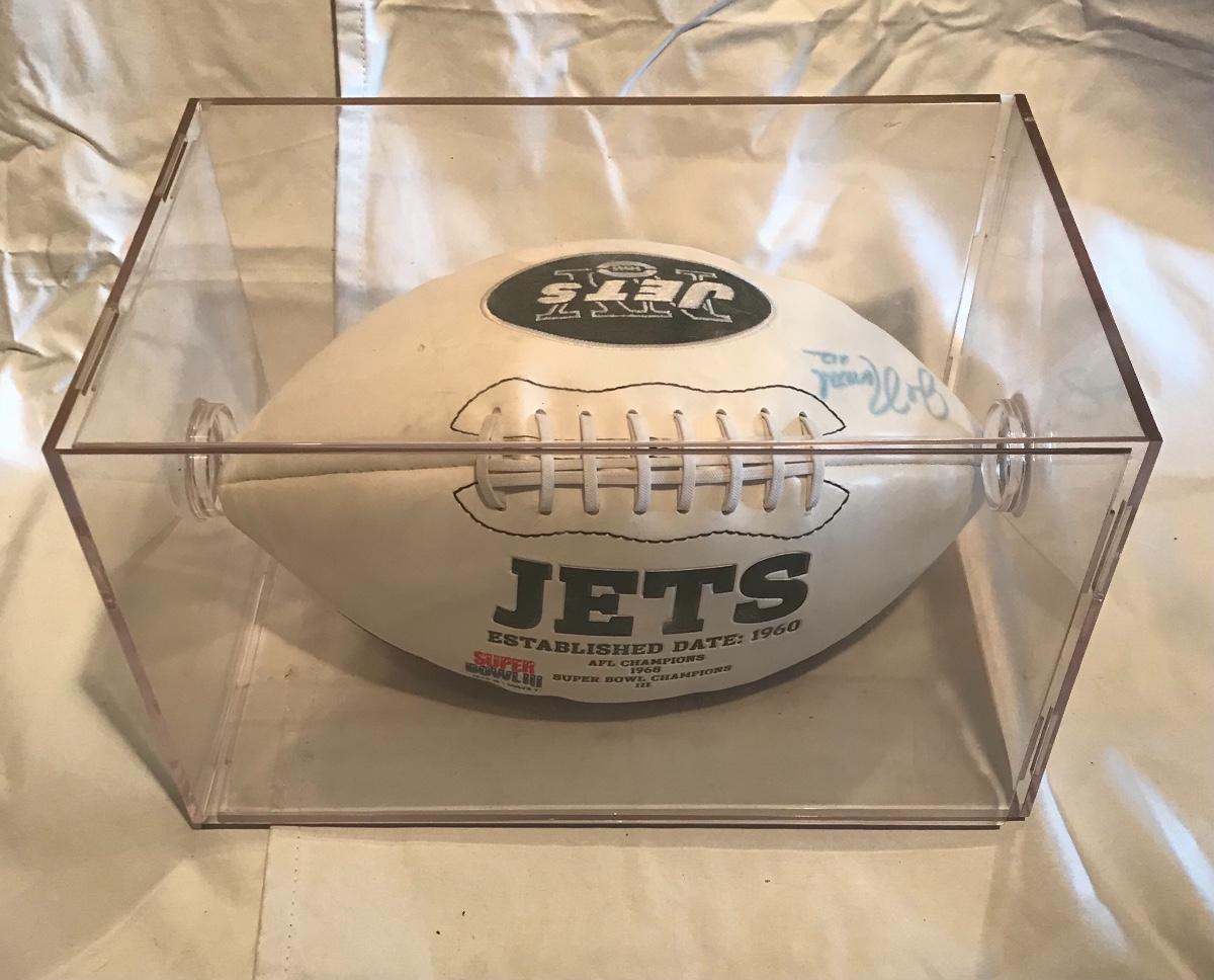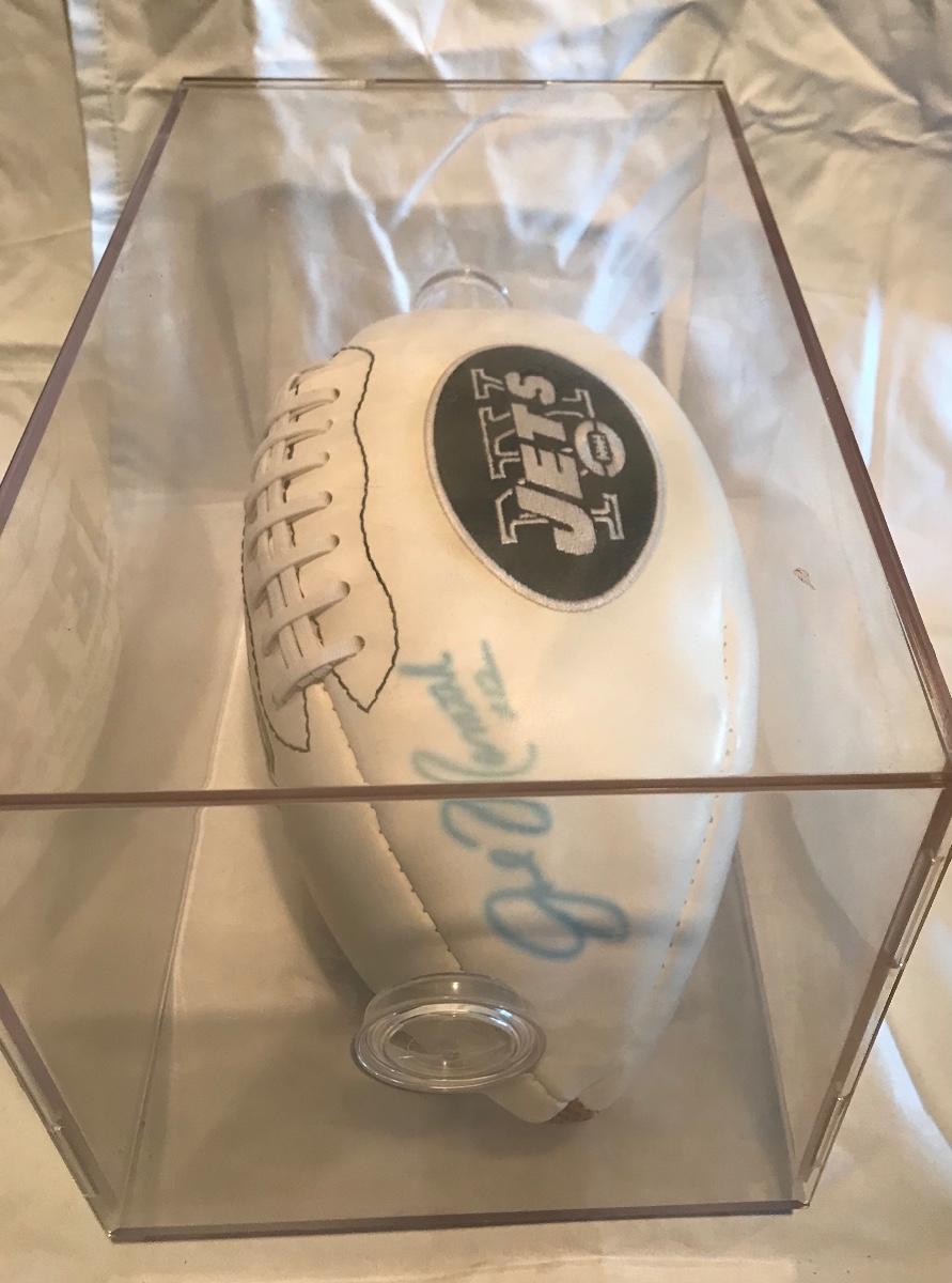 Football autographed by Joe Namath in plastic case with certificate of authenticity.The pictures show condition, measurements if taken, and what is included in the lot. Due to the large amount that we photograph and the time frame, we are not always able to take measurements. All items unless noted, are pre-owned and have been used. If you purchased furniture, you must bring help. We do not allow one person to carry large furniture out on their own. Bring help, tools and a truck for the safety of our client’s homes, and your personal safety. Company policy. Thank you.
