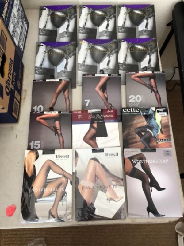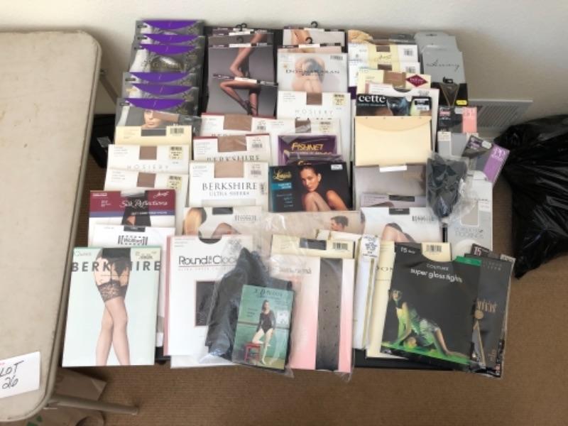 Lot 26U. Large assortment of women’s nylons/thigh high (new), size large--$150