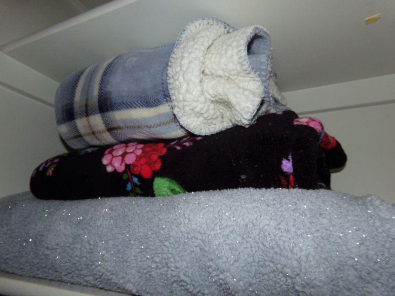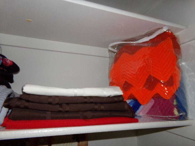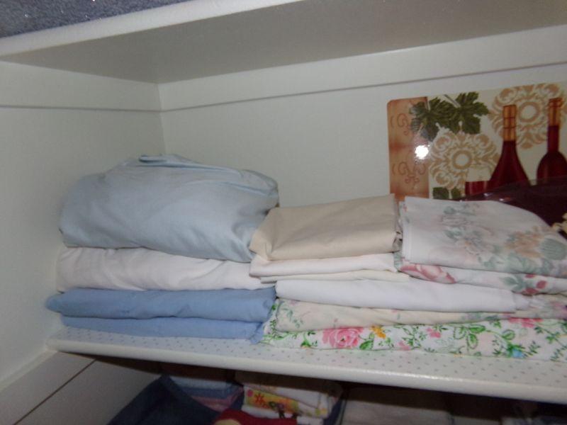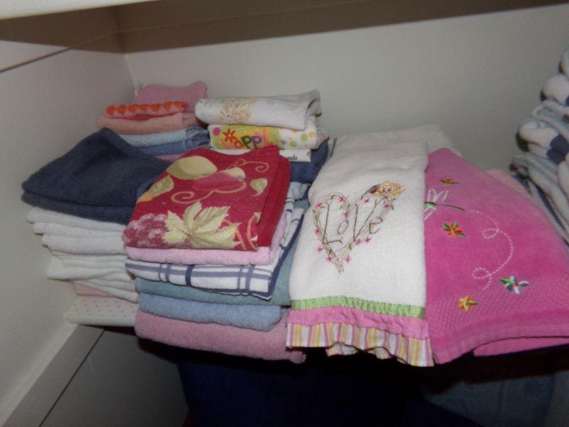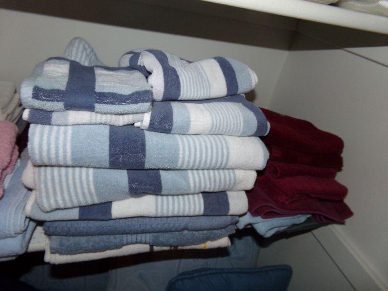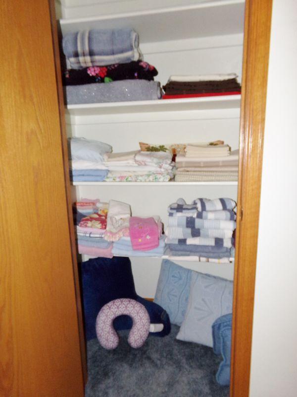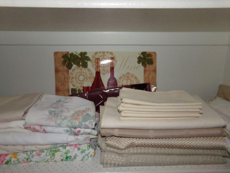 WHOLE CLOSET FULL OF TOWELS, SHEETS, LINEN TABLECLOTHS, PILLOWS, SOFT BLANKETS AND AFGHAN
