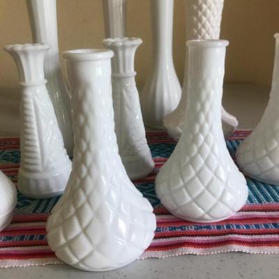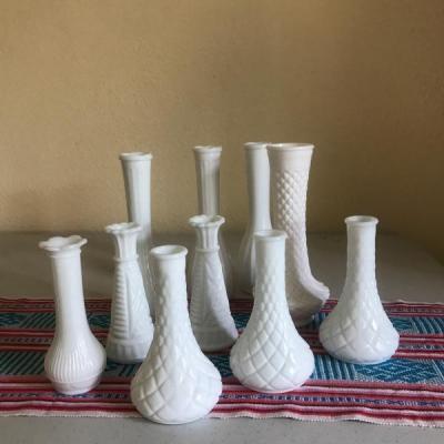 Lot 26: Lot of Milk Glass Bud Vases (10 Pieces)