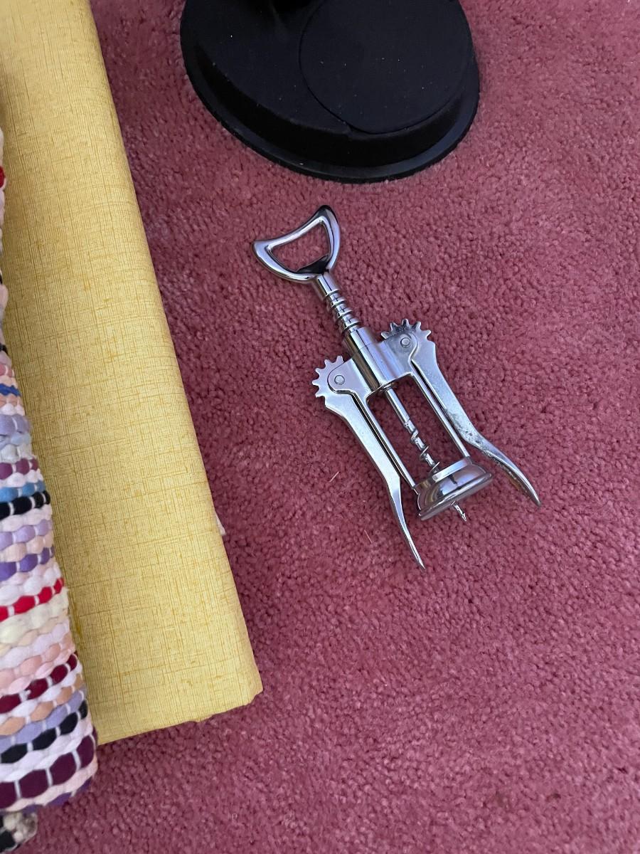 Misc. kitchen items, table cloths, wine openers.