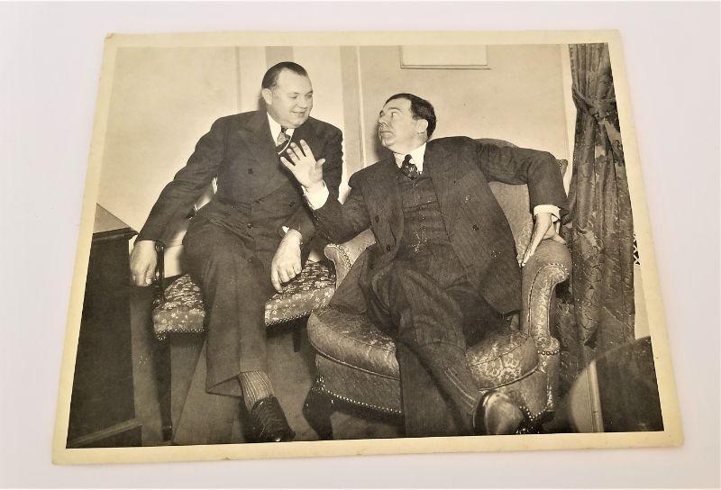 Great old photographic print of Louisiana Governor Huey P. Long and James A. "Jimmy" Noe in Long's hotel room at the old Roosevelt Hotel. Identified on reverse. Taken ca. 1933. Measures 10" by 8"