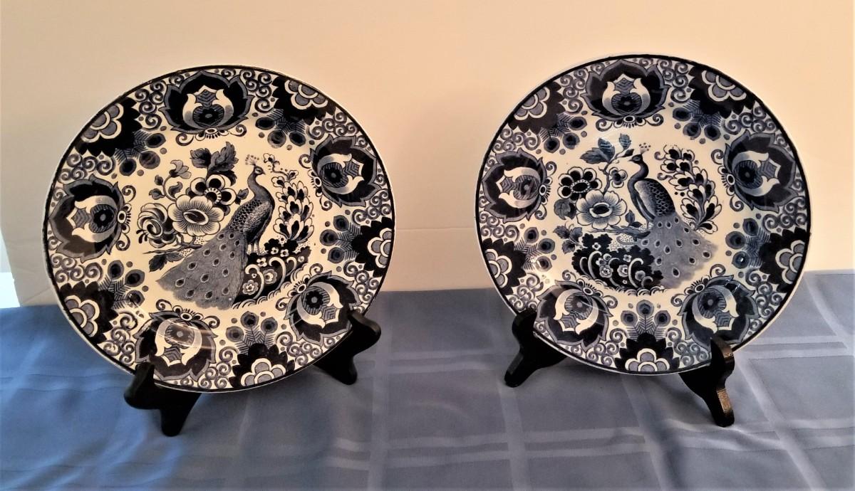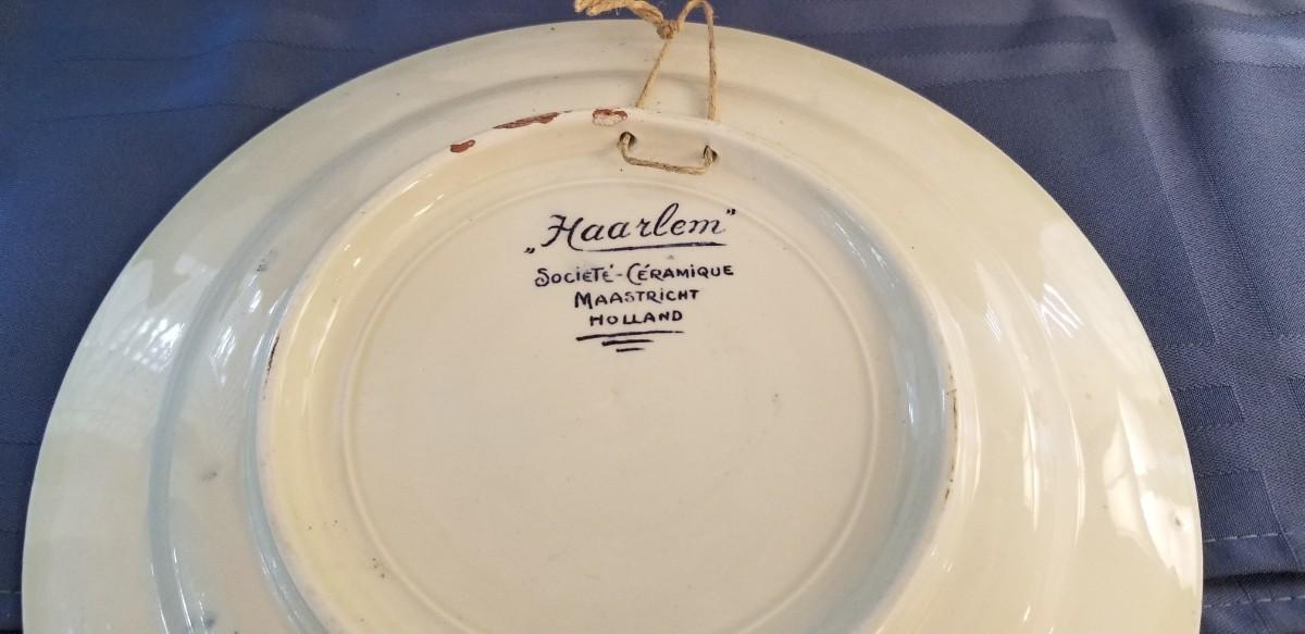 This nice pair has a great classic look - Marked "Haarlem Societe - Ceramique Maastricht - Holland. Good vintage condition. Each is 9.5" across.