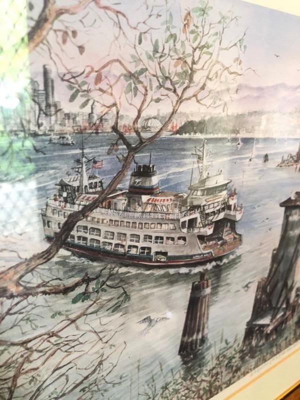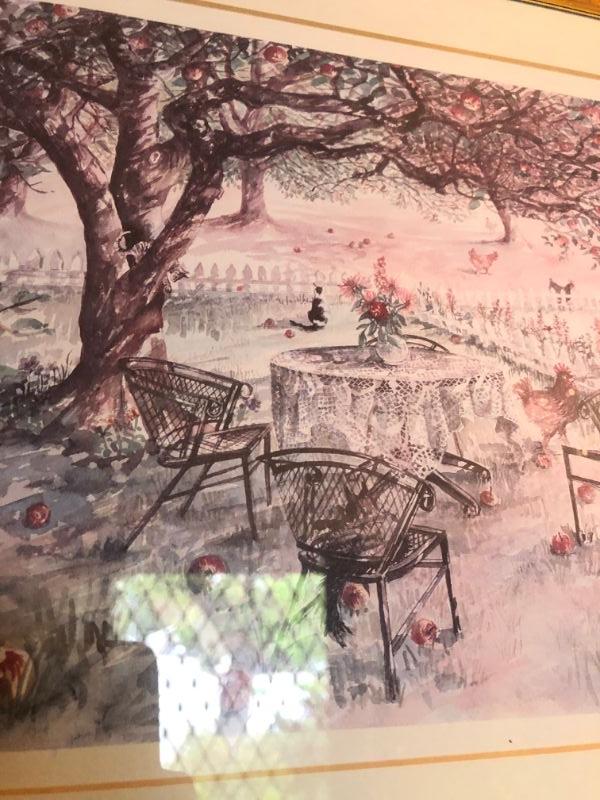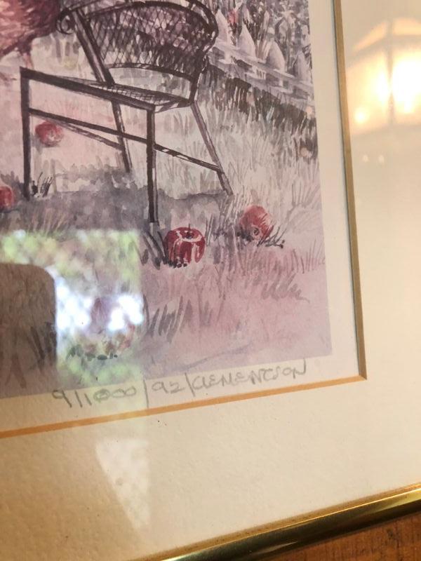 Pair of serigraphs 16in x 12in - artist: Clementson - Apple Tree scene #9/1000 1992, Cruiseship scene #22/1000 1992