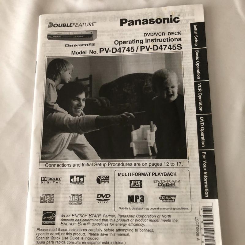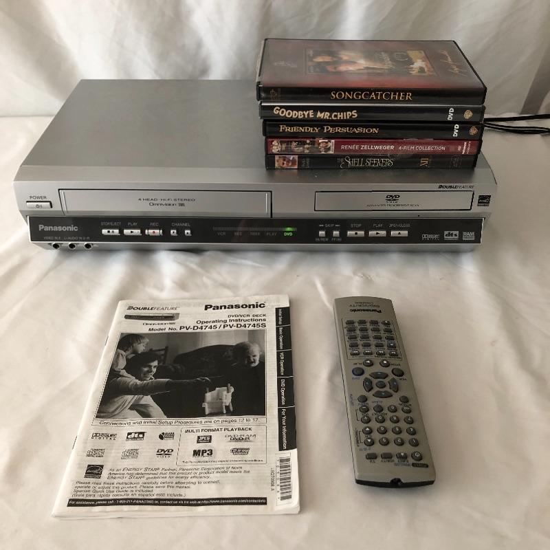This Panasonic DVD/VCR deck comes with remote and manual and powered on when plugged in. We have thrown in a handful of DVD’s to get you started. See images for model information, etc.