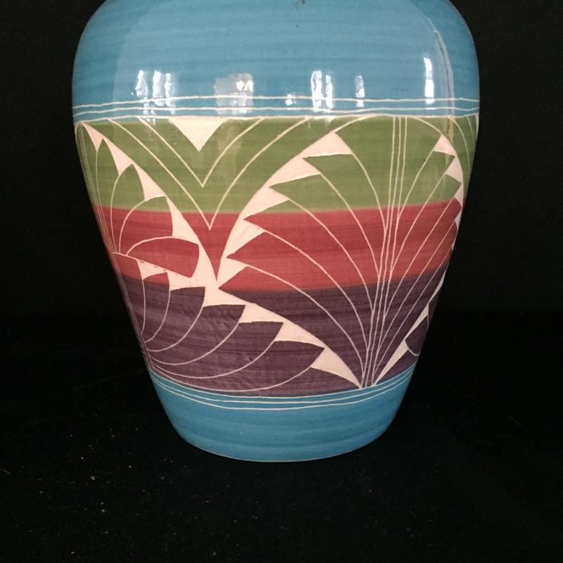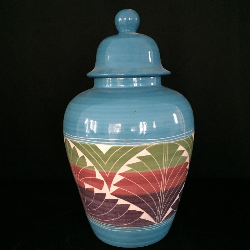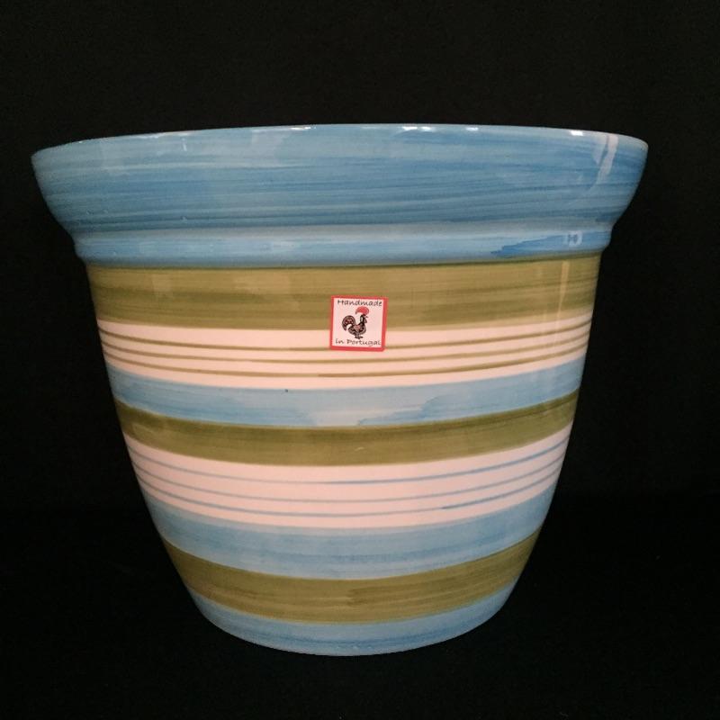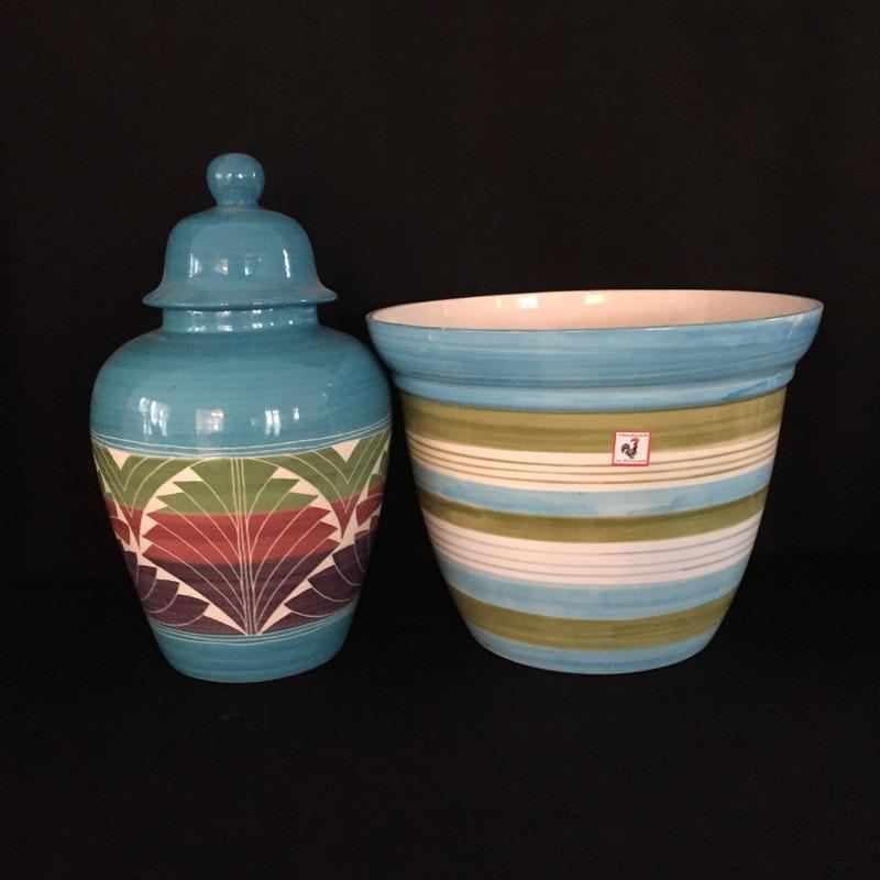 Colorful Plant Pot (made in Portugal) and Lidded Urn will brighten up any room. Love these bright colors and designs! Urn measures 16” tall (small chip on top). Local Pickup Only