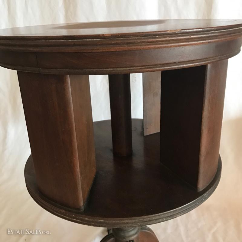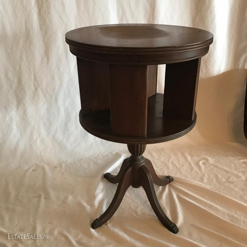 Wooden Round Swivel Magazine Table on a Pedestal Stand with metal Claw Feet