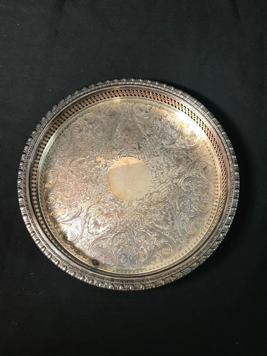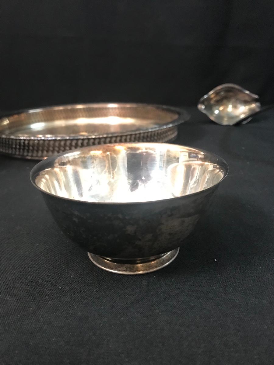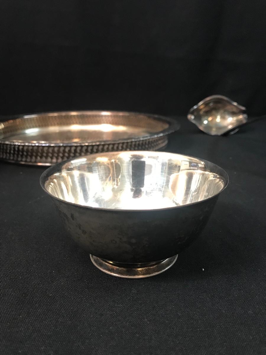 Lot of silver plated items - trays, bowls utensils. Please see all pictures as they are the best representation of the items. The pictures show condition, measurements if taken, and what is included in the lot. Due to the large amount that we photograph and the time frame, we are not always able to take measurements. All items unless noted, are pre-owned and have been used. If you purchased furniture, you must bring help. We do not allow one person to carry large furniture out on their own. Bring help, tools and a truck for the safety of our client’s homes, and your personal safety. Company policy. Thank you.