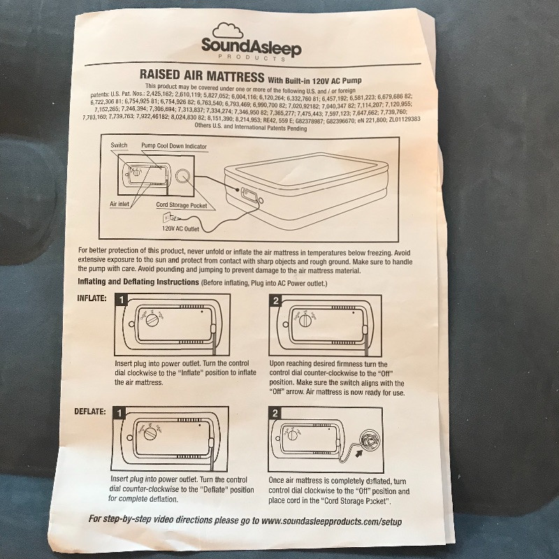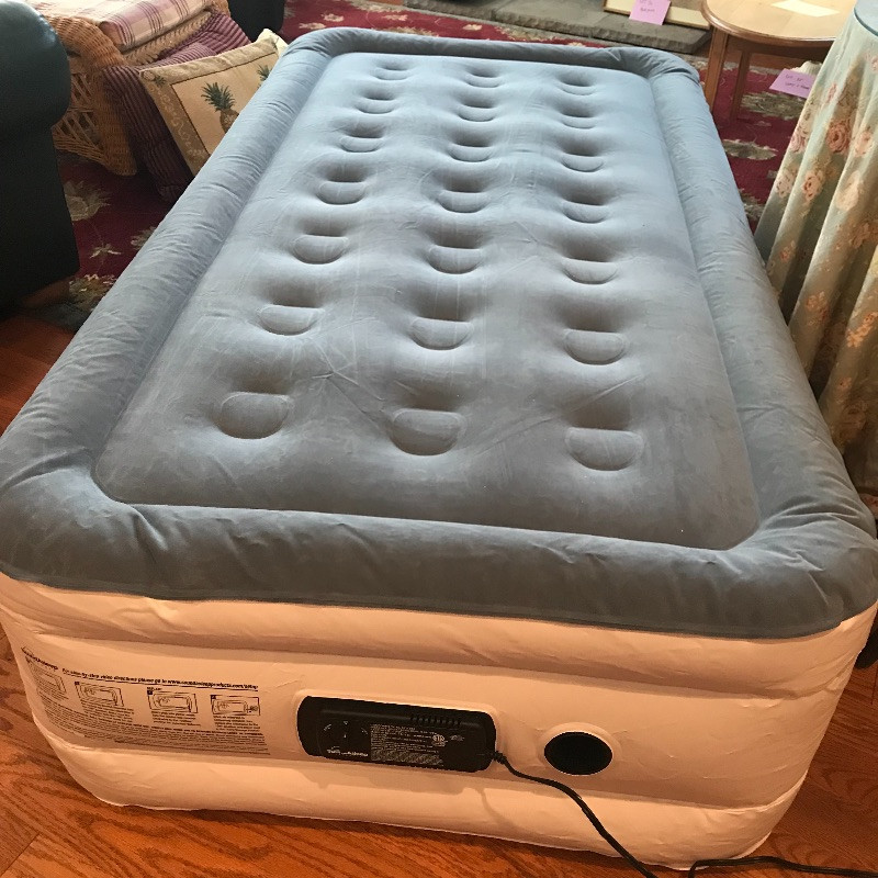You or your guest with sleep well with this SoundAsleep single sized raised air mattress with internal electric pump/deflater. Mattress has its own carry sack and holds air fine. It even has its new smell. LED lantern also included. Local pick up only.