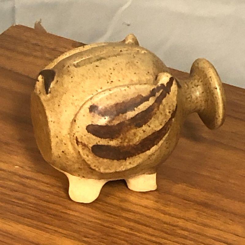 This one is similar to Lots 24 and 25 except that it doesn't have cork for it's snout. It is about 4.5" long and does have a maker's mark on it's bottom that is similar to Lot 27's marks.