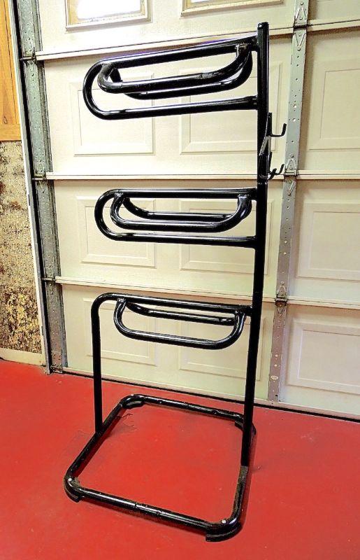 Lot 26: Three Tier Polished Metal Saddle Rack with Hooks