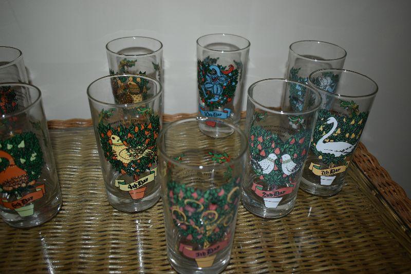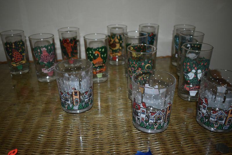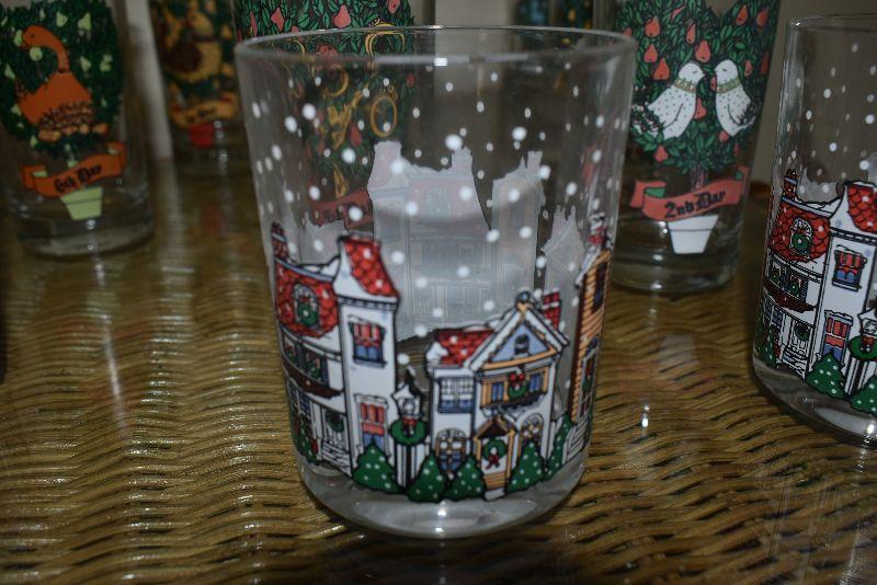 The Twelve Days of Christmas glasses plus three Christmas Houses glasses. No chips. Move from second floor.