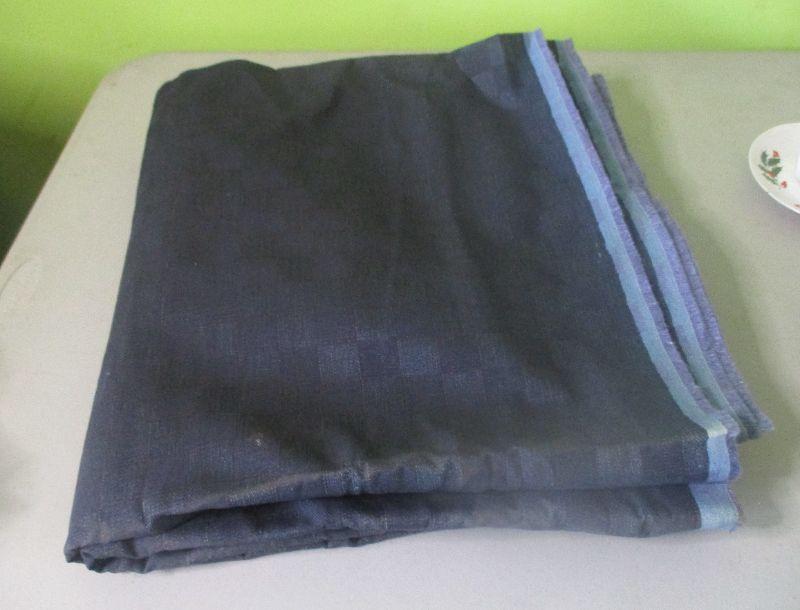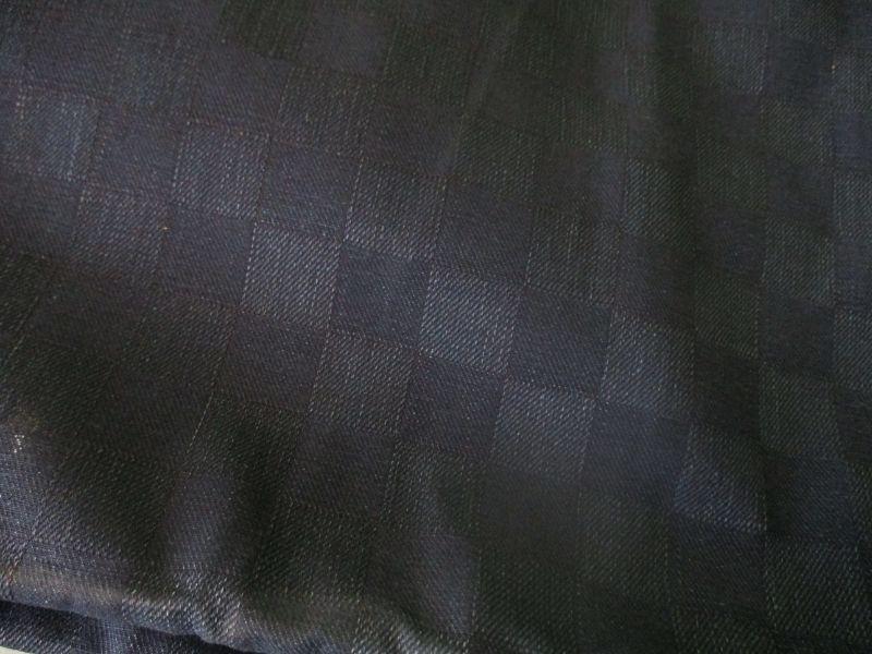 Found a receipt inside the fabric that indicates this was purhases in 1985. I didn't see any issues with the fabric such as fading, it just needs to be washed. It it is a heavy denim with a checkboard look. About 60" wide and almost 4 yards of fabric.