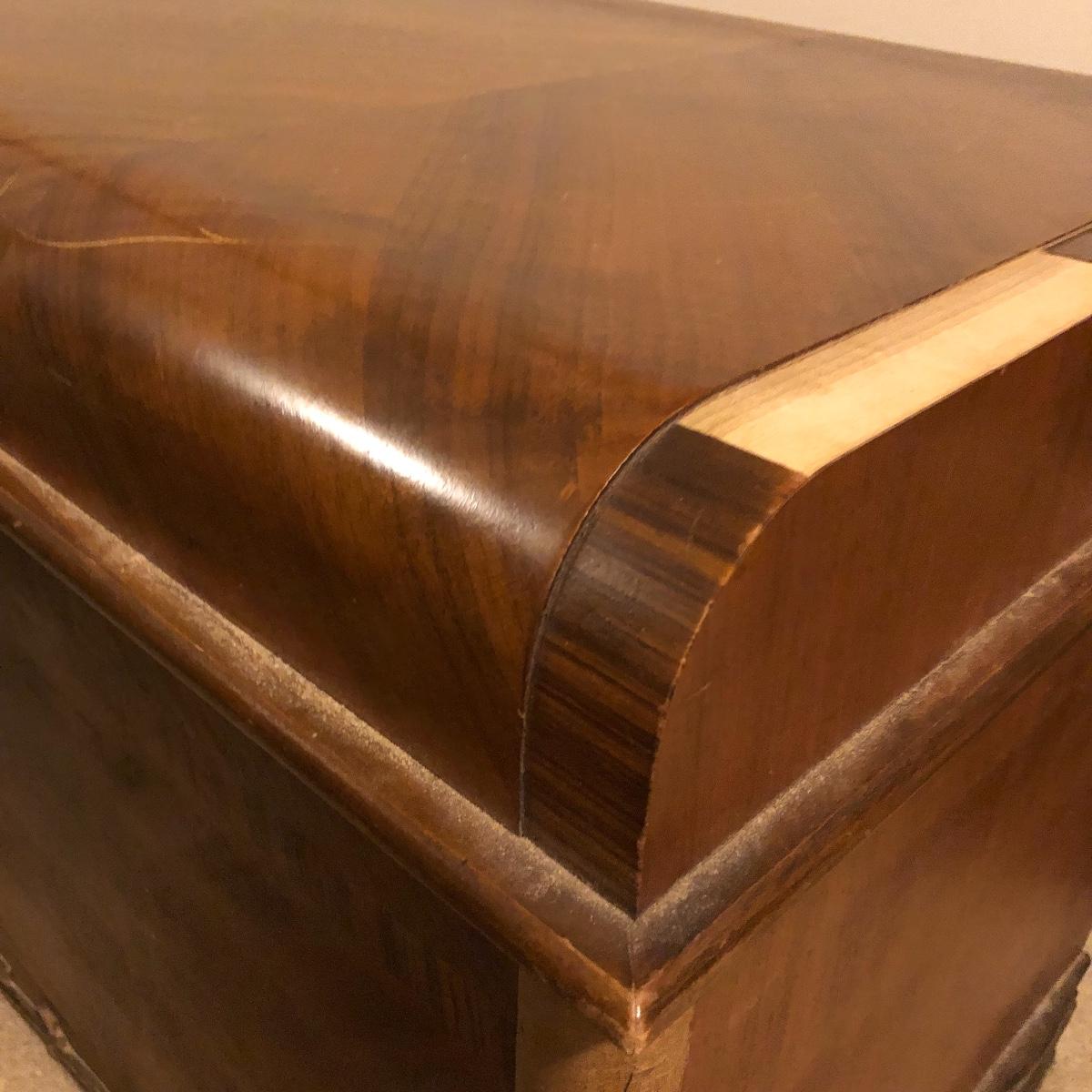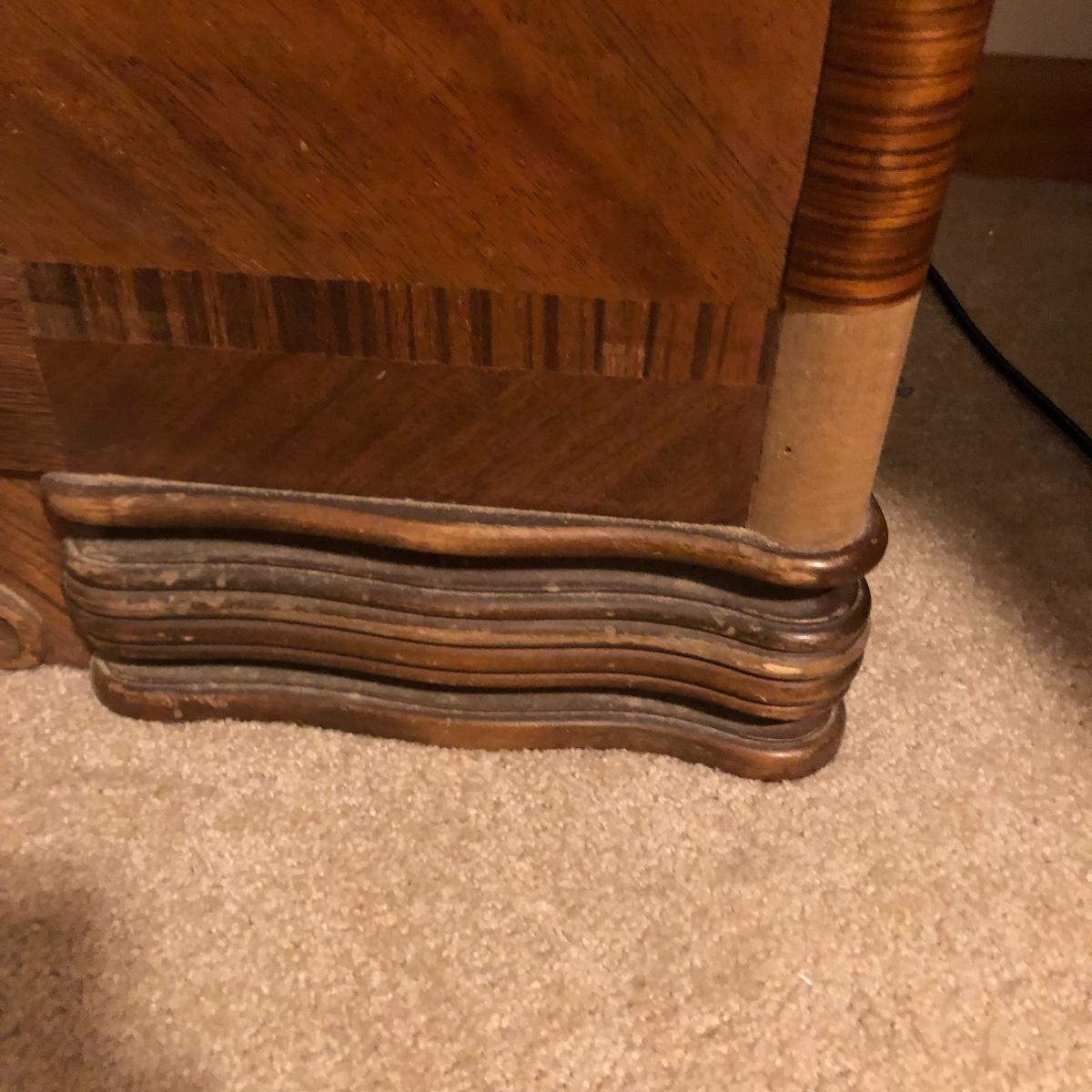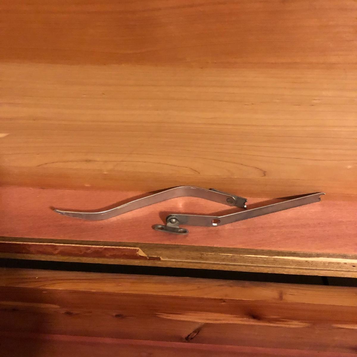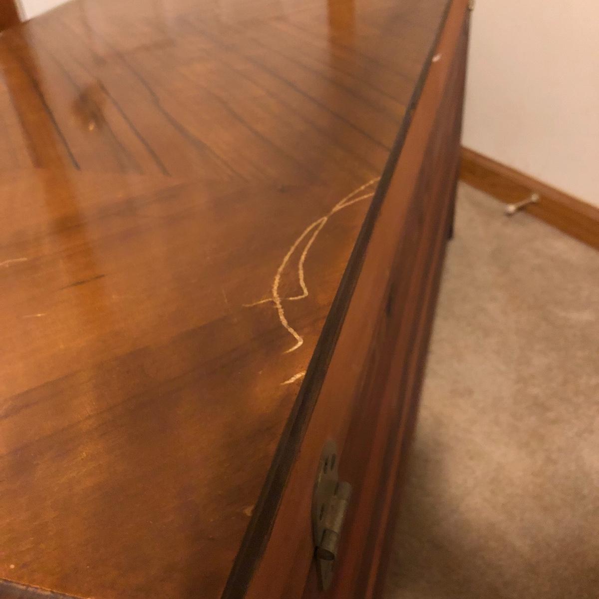 Keep the moths away from your fabric with this vintage Lane Cedar Chest. Open the top to the Wonderful smell of cedar. Chest has some veneer missing and the lock has been disabled and hinges taken off, see pictures. Please note that Lane had several recall on chests for locks, you can go to Lane.com to see if this chest needs a replacement lock. There is no charge for replacement. This is a safety recall and we cannot verify that this one has been done.