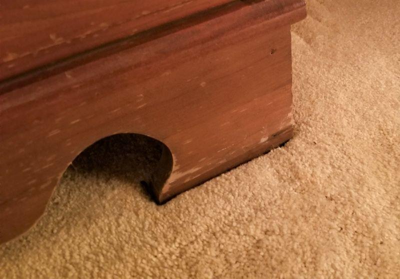 This vintage maple dresser has seen some use, but it's solid wood and would be great for a kid's room, especially if chalk-painted! No maker's name. Measures 50" wide, 19" deep, 33" T. Please note all photos - some wear at feet and a small area on top needs some love.