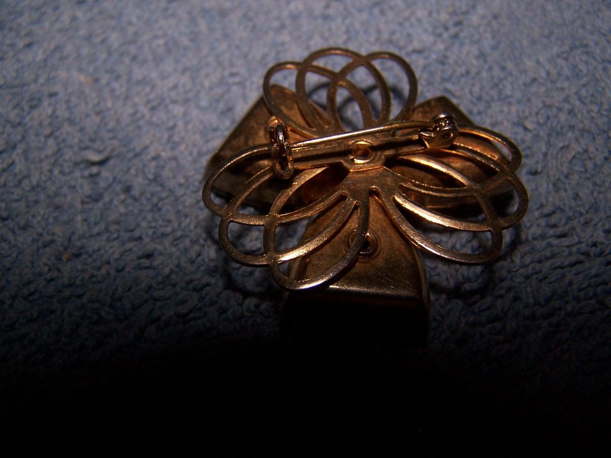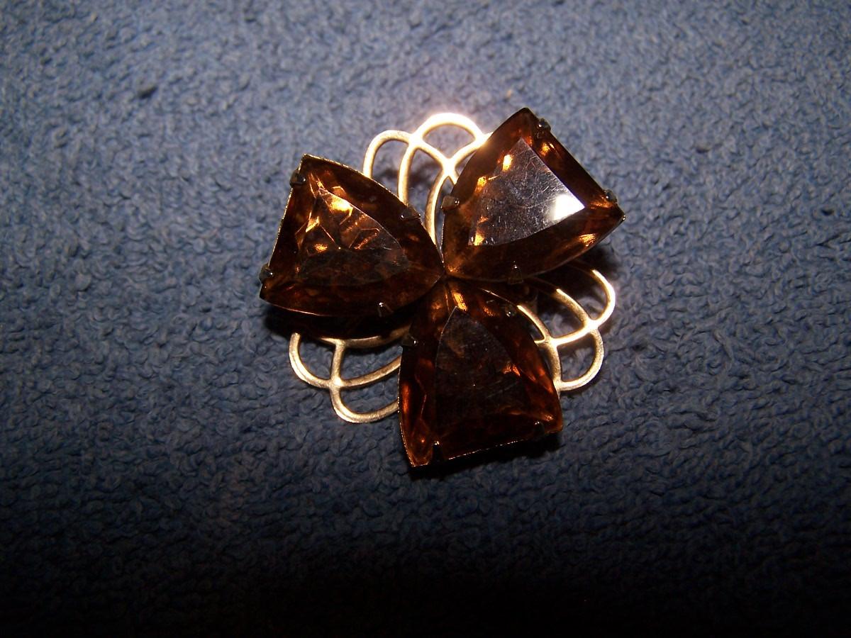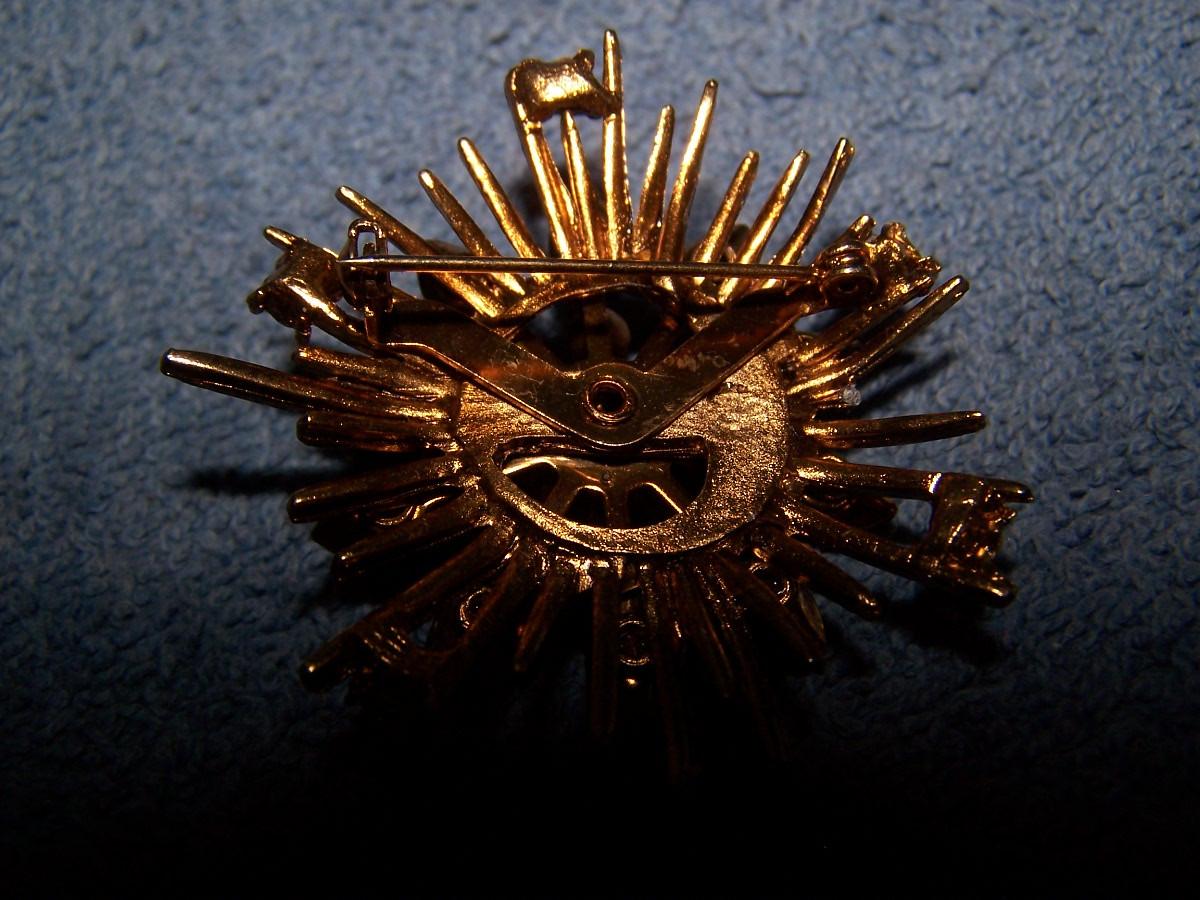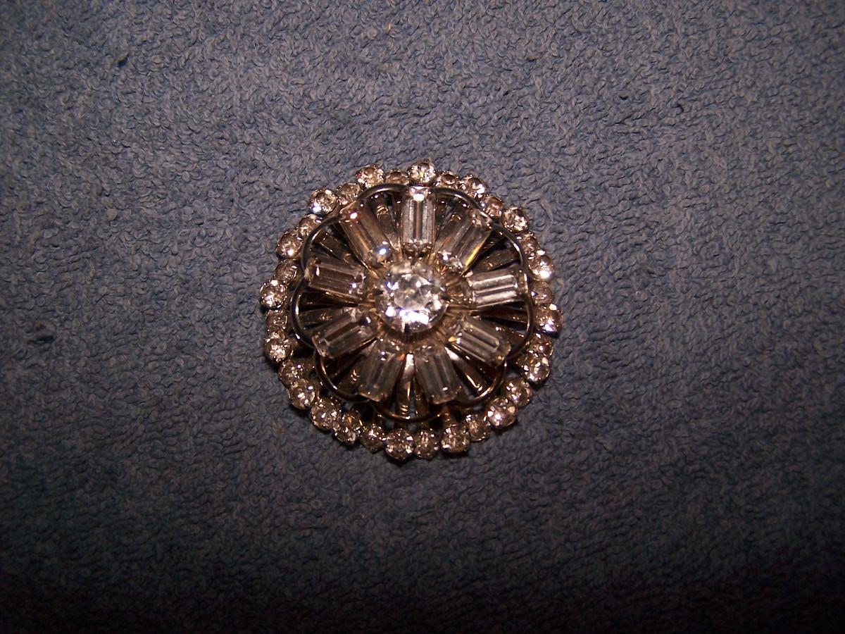 THESE ARE SOME WILD & CRAZY RHINESTONE PINS!!! UNMARKED. ORANGE/WHITE IS 2 5/8'' ACROSS.. LIGHT WEAR.