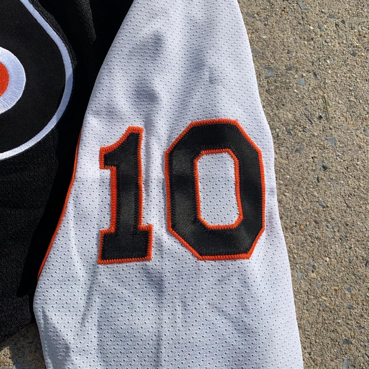 LOT 260 B: NHL Philadelphia Flyers John Leclair #10 CCM Jersey Size Junior Small / Medium & Starter Button Up T-Shirt Size Large