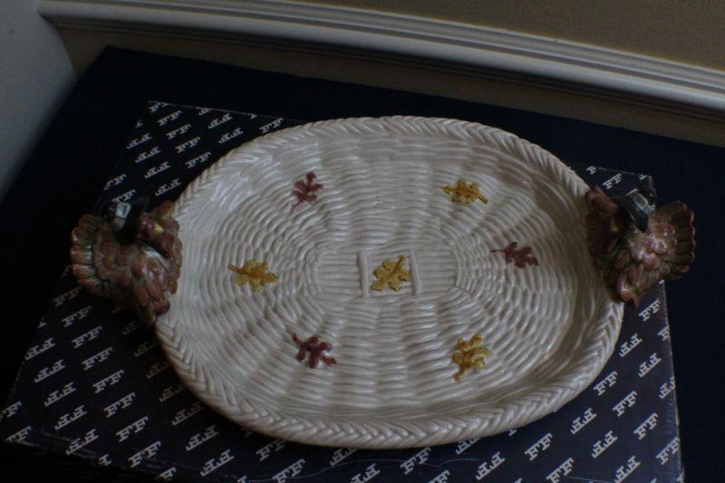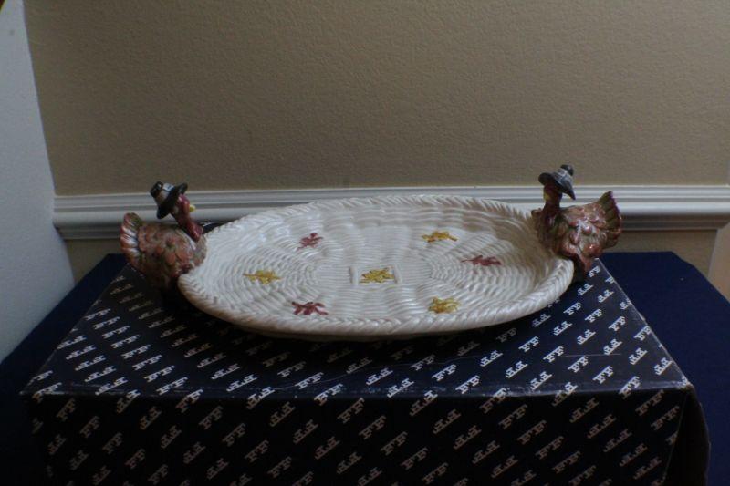 LOT #260: Vintage Fitz and Floyd Thanksgiving Turkey Platter w/ Turkey Handles