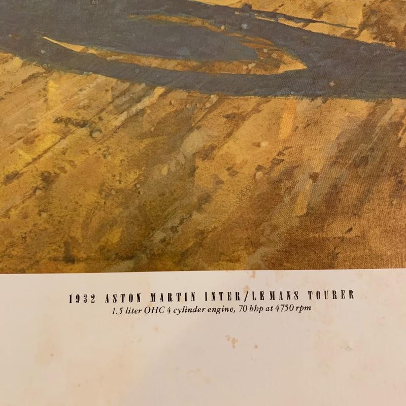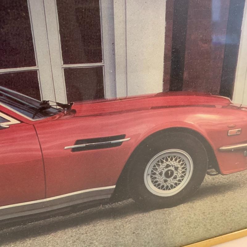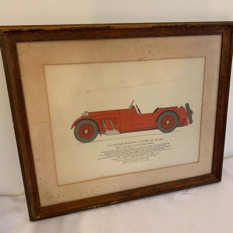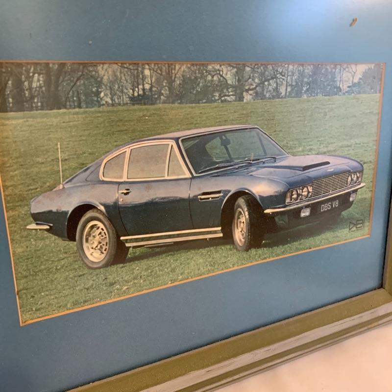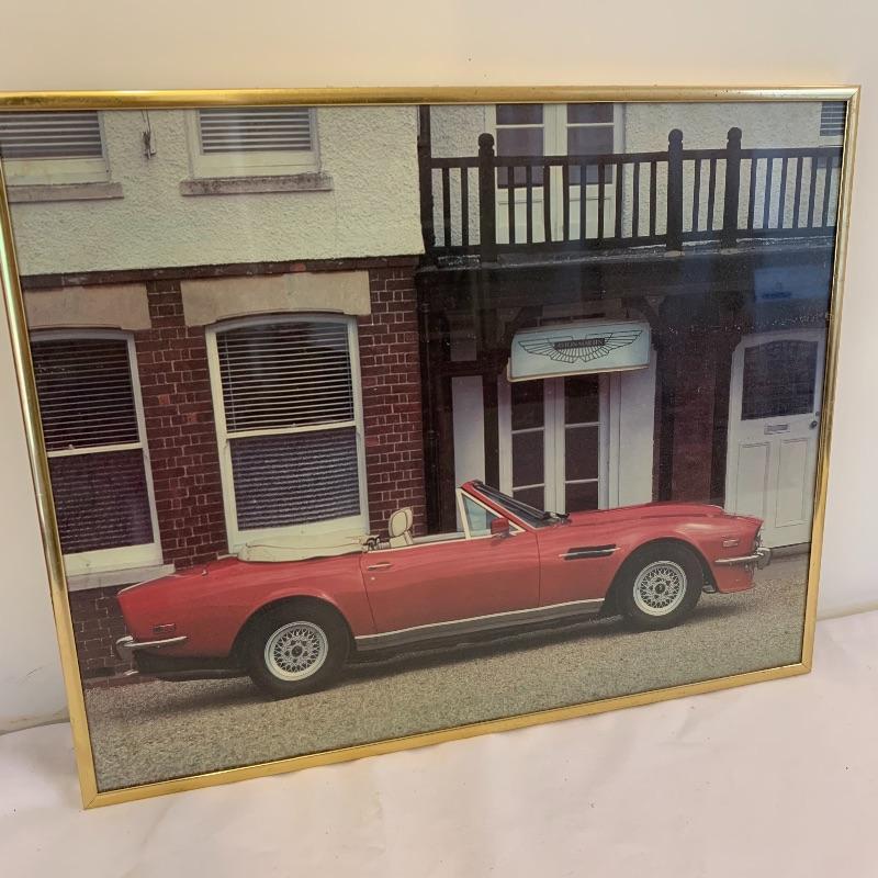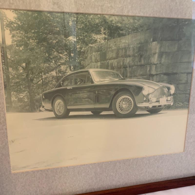 This lot includes several old photos of Aston Martin cars, including an old green one (21” x 17”), a green Mazda (21” x 17”), a blue car (17” x 14”), a red Aston Martin (20.5” x 16.5”, 2 copies), four other Aston Martin photos and a poster. Two of the photos have significant peeling on the back. Local pickup only.