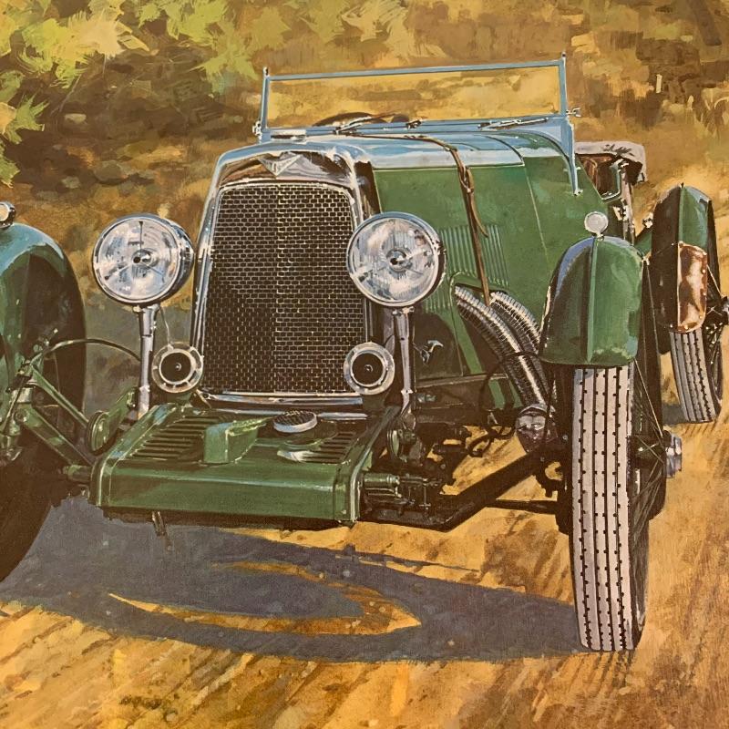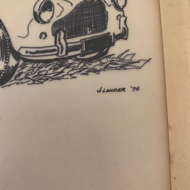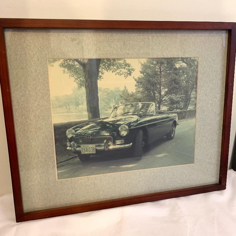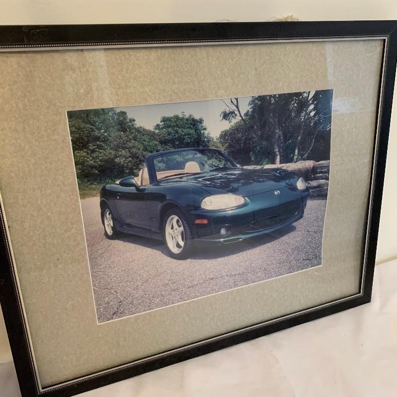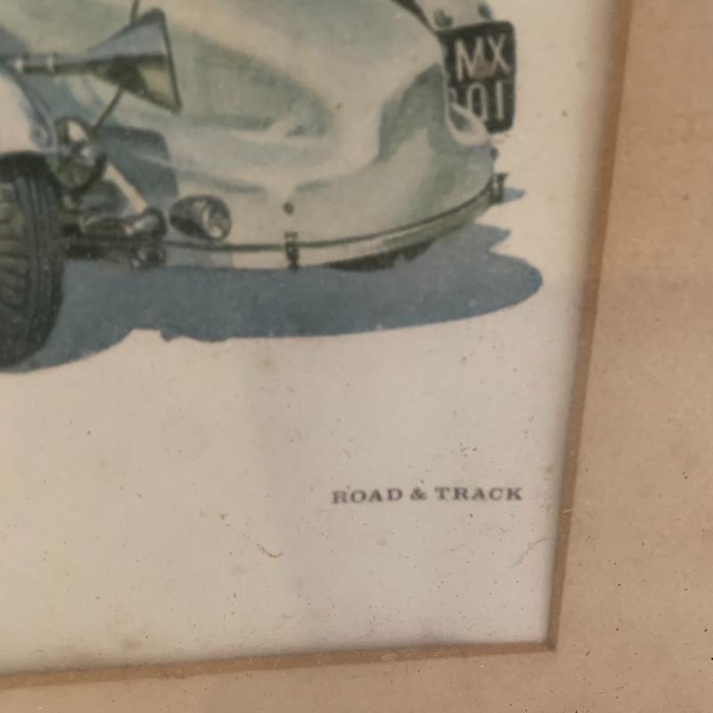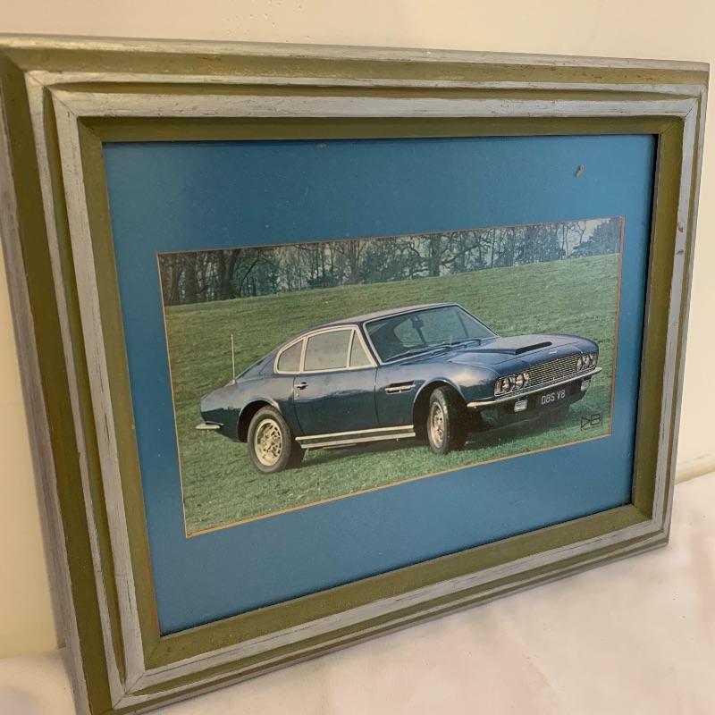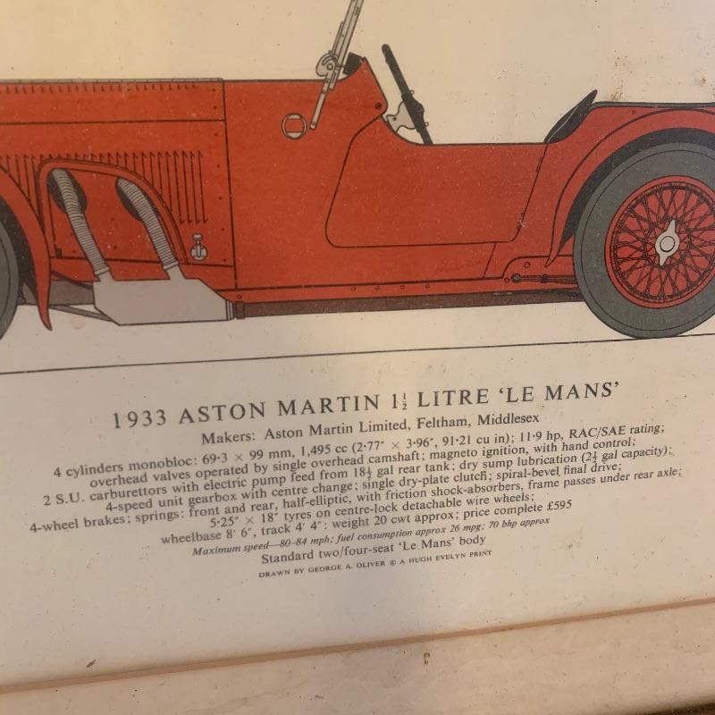 This lot includes several old photos of Aston Martin cars, including an old green one (21” x 17”), a green Mazda (21” x 17”), a blue car (17” x 14”), a red Aston Martin (20.5” x 16.5”, 2 copies), four other Aston Martin photos and a poster. Two of the photos have significant peeling on the back. Local pickup only.