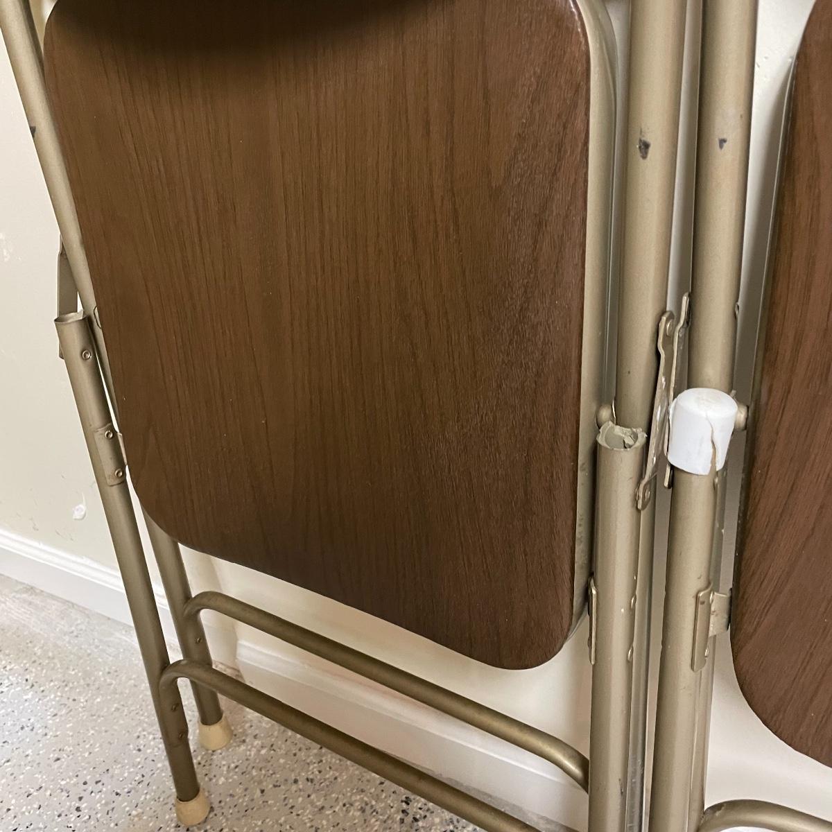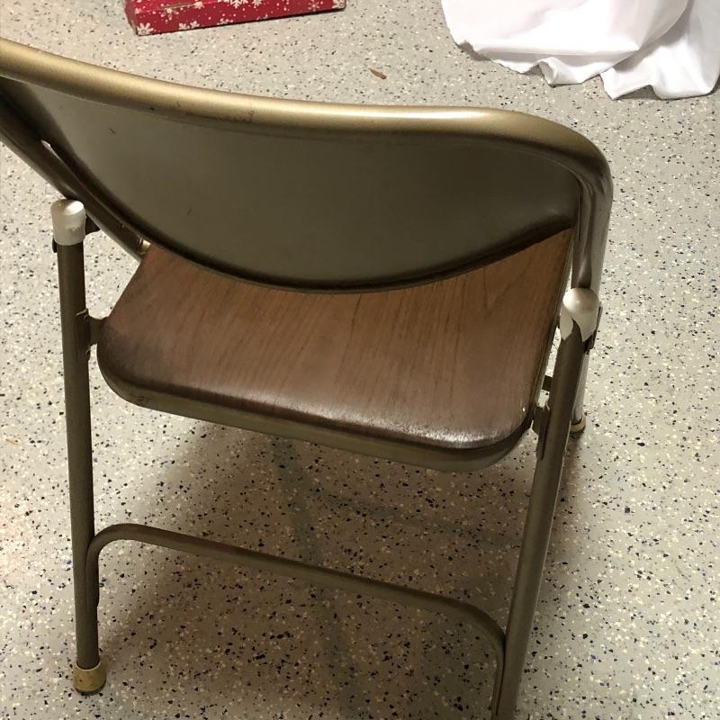 Chairs have a wood styled vinyl seat cover and measure 17” x 21” x 29” with a 17” seat height.